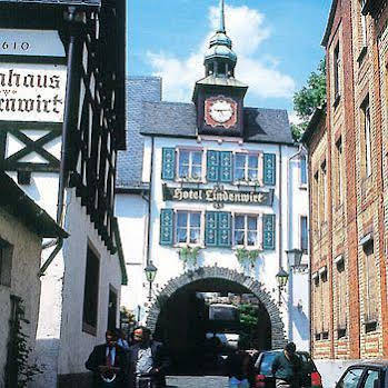 At the Hotel Lindenwirt, you will be amazed at the special atmosphere and the possibilities for entertainment. Whether it be you on your own, the two of you, you with your club, association, company or travelgroup, who intend to spend a few days of cheerfulness and Rhynish comfort. Romantic halftimbered buildings with profusely woodcarved bays, open galleries around the beautiful inner court yard and the old lime-tree create a unique background. Where in former times the wine matured, bottles were racked and the vintagers tools were stored, you can now have a meal and drink, dance, seesaw, join the polonaise and listen to the singing cellarer in winerestaurants, garden restaurants and cellar premises. After a pleasant evening you can sleep well in one of the rooms of the Hotel Lindenwirt, or maybe even for once in an original wine-barrel-room. In case you arrive by car or bus, you can use the large inner courtyard as a parking place.* Seasonal Closure01st January - 12th February 2016