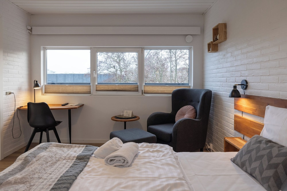 Facilities and services include restaurant, bar, wireless Internet access, playground, meeting room and parking.Rooms feature TV, coffee /tea maker, wireless Internet access and bathroom.Consists of two buildings. Guests can enjoy all the services offered in these hotels. It's not possible to book a specific building.Note: Reception with limited opening hours. Please advise flight number and estimated arrival time when booking this hotel.Address: Søndergade 248, 9900 Frederikshavn, Denmark.