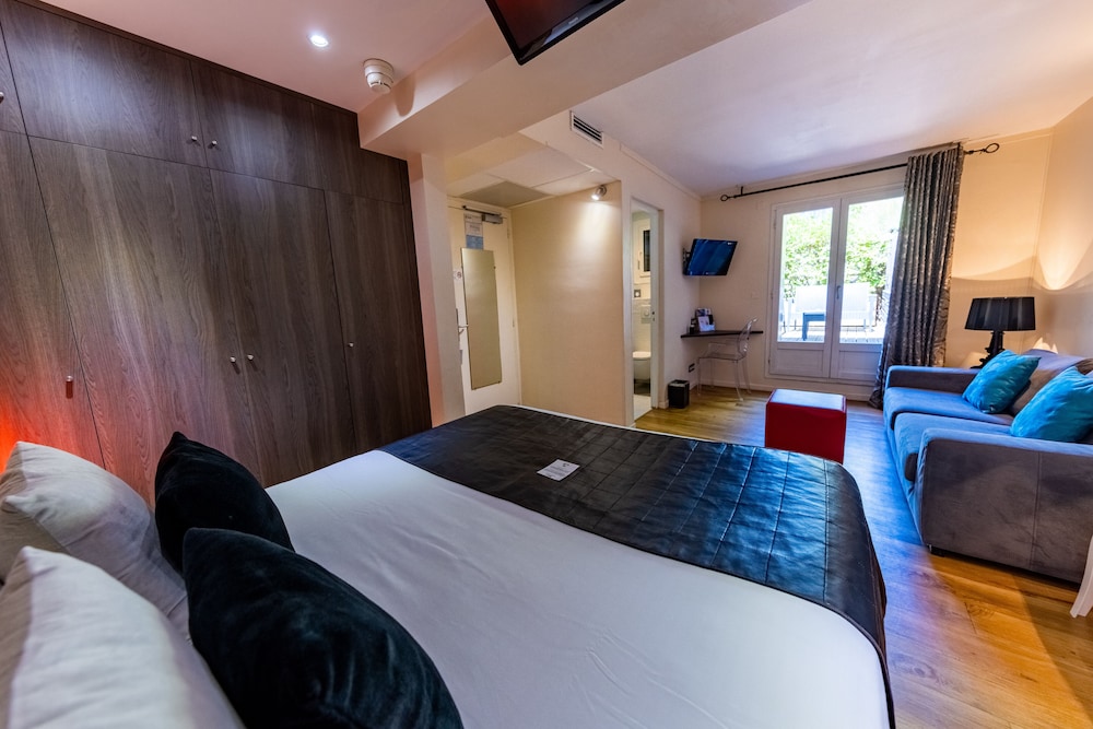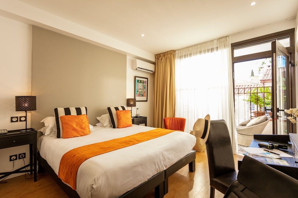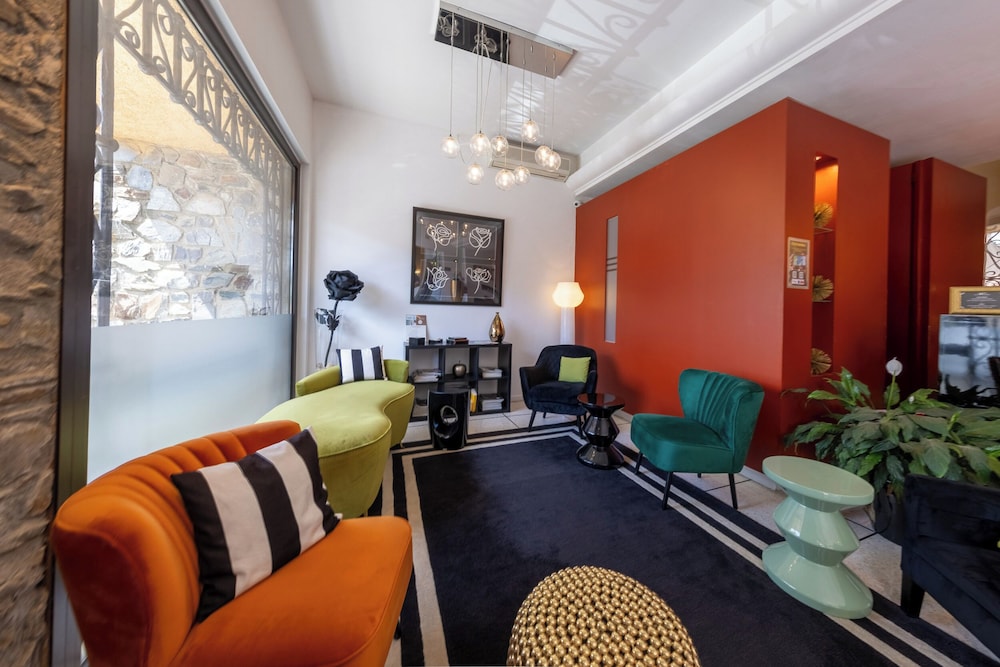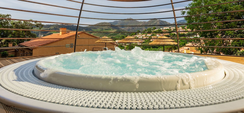 Just 500 metres from Collioure town centre and a 10-minute walk from the beach is Hotel Madeloc. It offers a year-round heated outdoor swimming pool a rooftop solarium a hot tub and a hammam. Beauty treatments and massages are available upon request.Guest rooms at Madeloc are decorated in neutral tones and one bright colour each also features air conditioning an LCD TV and a minibar. Some of the rooms also have a terrace or a balcony. Rooms are located on one of the three floors of the hotel and are accessible by stairs only. One room is adapted for guests with reduced mobility.A buffet breakfast is offered every morning with the option to dine in the comfort of guest rooms. Madeloc also offers free WiFi throughout the property.A gift shop is also available and offers local produce spa products and jewelry.Collioure Train Station is just 200 metres away and the D914 is 5 minutes away. The hotel is 6.5 km from Argelès-sur-Mer and 25.5 km from the Spanish border. Upon request and for an extra cost private parking is possible on site.