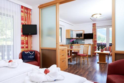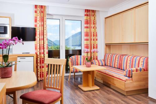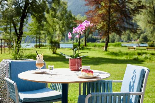 The modern family-run Hotel Moser is right by the lake bridge of Techendorf only a few steps away from the shores of Lake Weissensee. The spa area features an indoor pool a sauna an infrared cabin and a fitness room. Massages and beauty treatments are available.Rooms at Hotel Moser - Ihr Hotel mit Herz come with a balcony a seating area satellite TV wooden floors and a bathroom.Half-board comprises a breakfast buffet a lunch snack a cake buffet with coffee and tea bar and a 5-course dinner with a choice of meals. The Carinthian water bar and fresh fruit are available throughout the day.The hotel also features a lobby bar and a garden with a children's playground. In winter Hotel Moser provides ice sticks sledges and toboggans. The ski bus stop and the cross-country ski run are only a few steps away.In summer there is a large beach area with sunshades and deck chairs. The hotel also has its own dive centre. Bicycles pedal boats rowboats and electric scooters are available.For guests with dogs a separate beach area and a separate dining area in the restaurant are available.