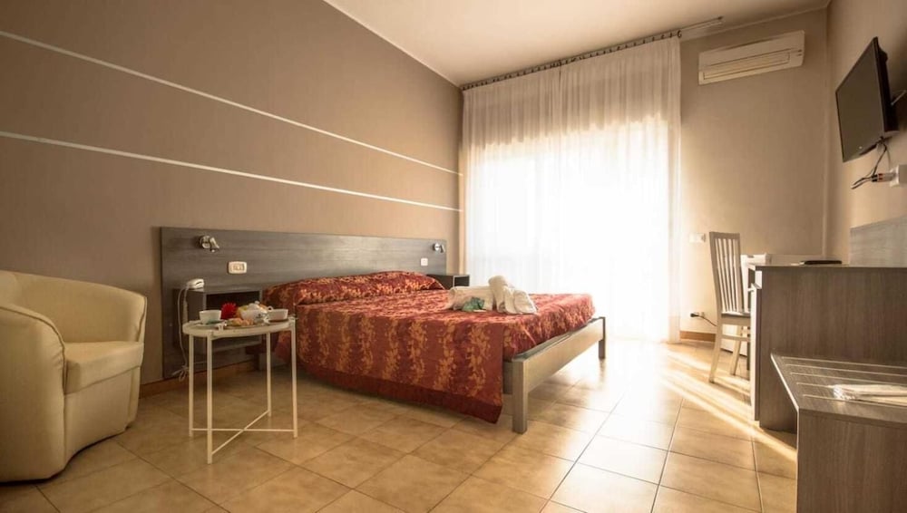 The family-run Hotel Palatinum is 10 minutes' drive from Metaponto Lido beach and next to Magna Graecia archaeological area. It offers free parking and air-conditioned rooms with free Wi-Fi.Each room at the Palatinum Hotel comes with a TV and private bathroom with a shower and hairdryer. The hotel can also accommodate up to 200 people in its congress centre.The Colucci family have been welcoming guests for over 30 years. They serve a buffet breakfast each morning while the Palatinum restaurant offers seafood specialities and local wines.During summer a free shuttle takes you to Metaponto Train Station and Planet Beach where you will find a kids club and organised entertainment.The hotel is near the SS106 and SS407 national roads giving you great links to the major attractions in the regions of Basilicata and Puglia. Matera is 40 minutes' drive away.