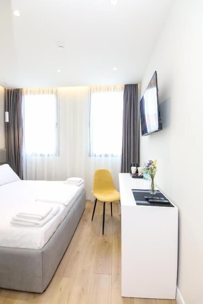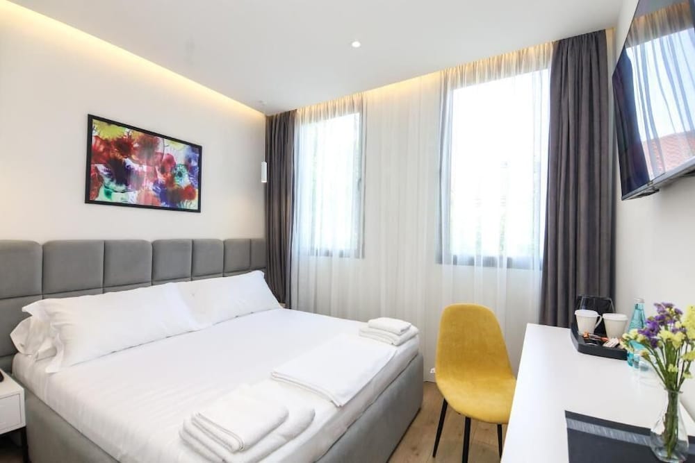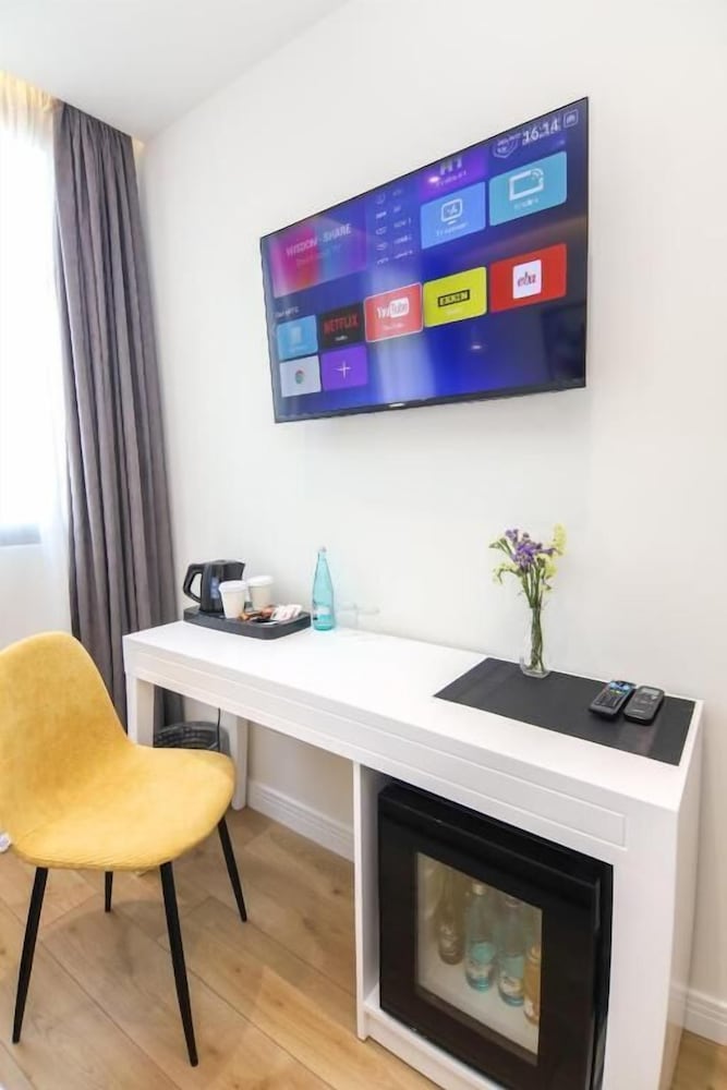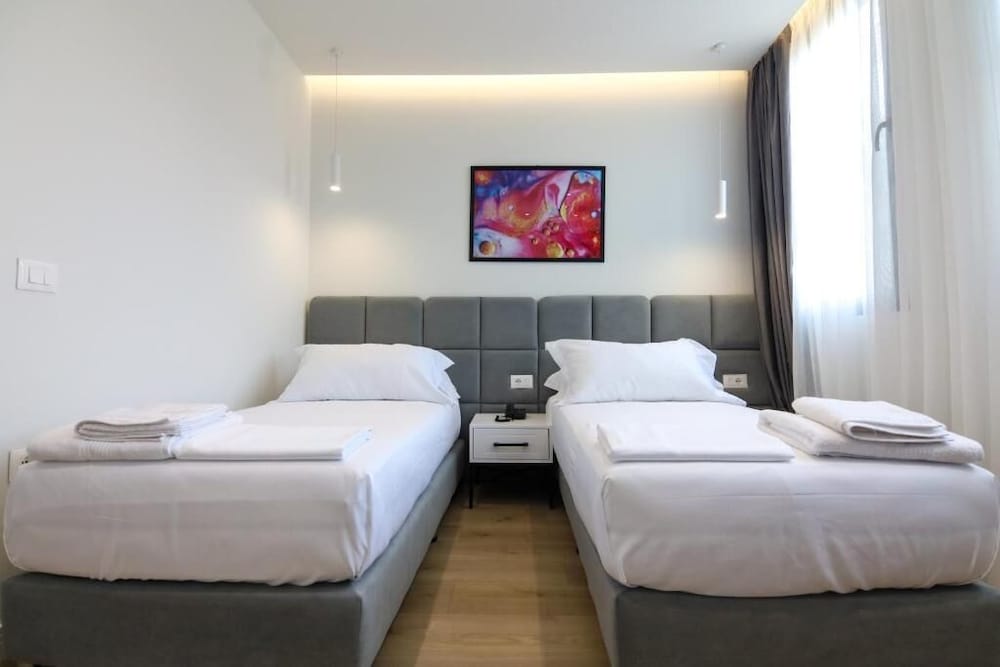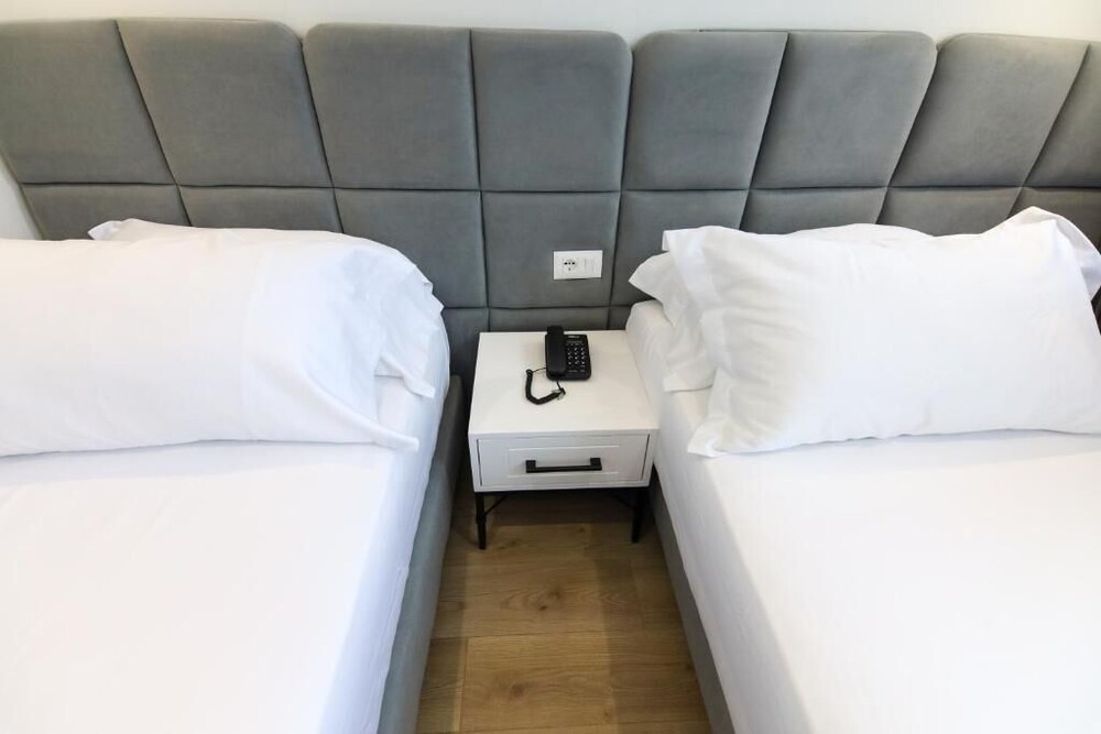 Hotel is located in the historic center of Tirana, next to the Albanian Parliament. The Skenderbeg Square and the main promenade can be reached in 5 minutes. There is a Chinese restaurant right next to the hotel, as well as a grocery store. A restaurant serving traditional local specialties is located just 100 meters away. A spacious park with a promenade can be found just a few hundred meters from Hotel. Tennis and football courts can be reached in 5 km. Tabak Bridge can be reached in 2 minutes on foot, while the National Museum is a 5-minute walk away. The Main Bus Station is 900 metres from the hotel, while the Train Station is 1.4 km away.