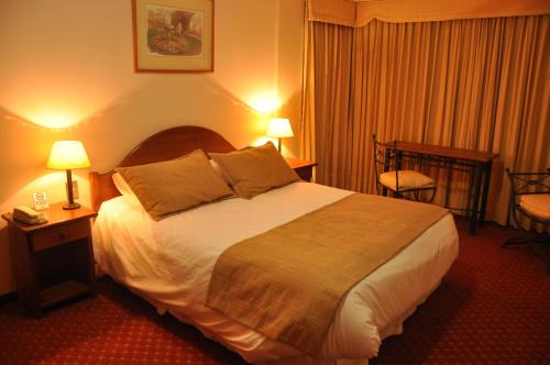 Located 300 metres from the train and bus stations and 700 metres from El Roble Shopping Centre Hotel Paso Nevado offers accommodations with free WiFi in Chillán. A garden business centre and snack bar are featured on site.Guests at Paso Nevado Hotel will find a daily complimentary buffet breakfast.Providing a tranquil environment rooms at Paso Nevado have private bathrooms and cable TVs. Additionally they are fitted with a safety-deposit box free toiletries bed linen and towels. Room service is available.In addition the hotel can organize excursions tours and transfers for an extra fee. The 24-hour front desk can arrange laundry services for an extra fee and luggage storage is provided.Hotel Paso Nevado is 200 metres from Claudio Arrau Museum and 400 metres from the Chillán Cathedral. Termas de Chillán Ski Centre is 70 km away. Free private parking is possible on site.
