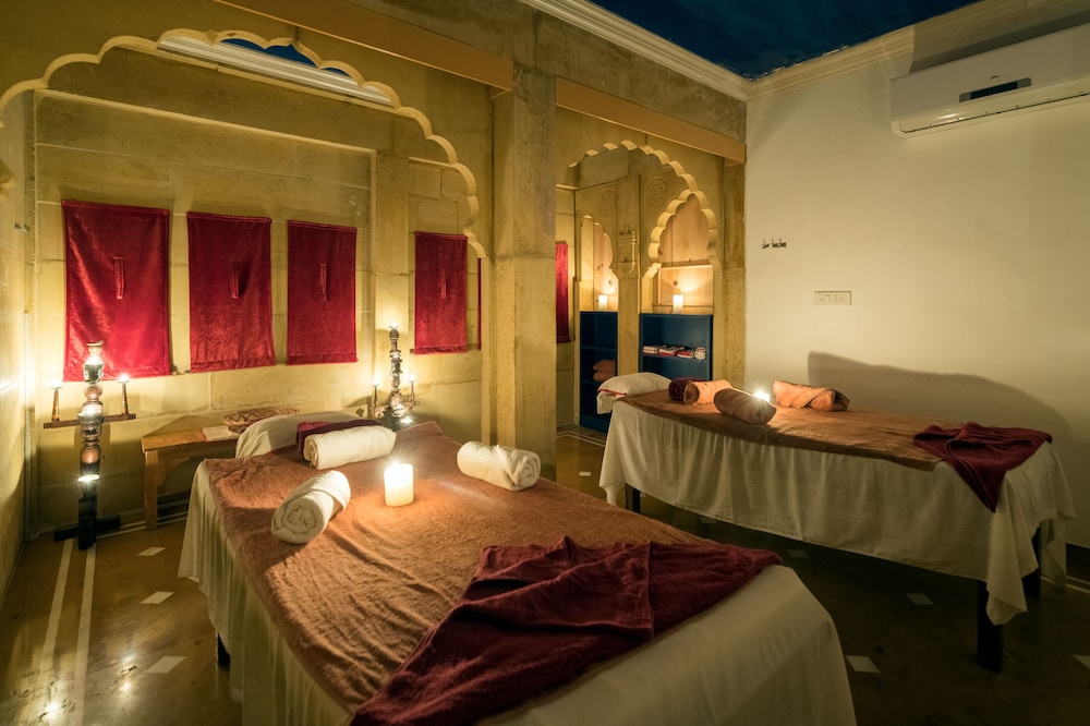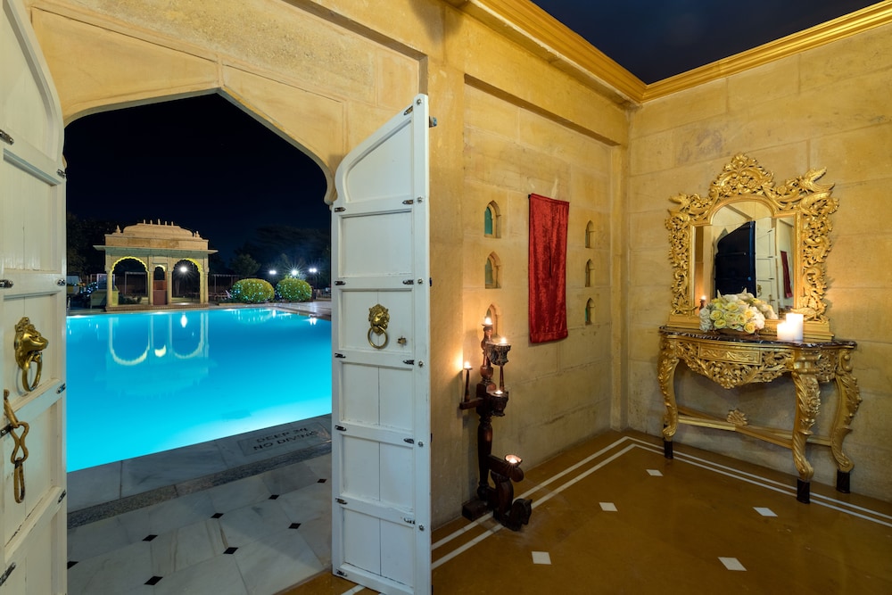 When you stay at Hotel Rang Mahal in Jaisalmer, you'll be in the historical district and convenient to Nathmalji-ki-Haveli and Bhatia Market. This 4-star hotel is within close proximity of Jaisalmer Fort and Patwon-ki-Haveli.Rooms Make yourself at home in one of the 118 air-conditioned rooms featuring minibars and LCD televisions. Complimentary wireless Internet access is available to keep you connected. Bathrooms have complimentary toiletries and hair dryers. Conveniences include phones, as well as safes and desks. Take advantage of recreational opportunities offered, including a health club, an outdoor pool, and a spa tub. Additional features include complimentary wireless Internet access, concierge services, and tour/ticket assistance.Dining Grab a bite at one of the hotel's 2 restaurants, or stay in and take advantage of 24-hour room service. Relax with your favorite drink at a bar/lounge or a poolside bar. A complimentary buffet breakfast is included.Business, Other Amenities Featured amenities include a business center, a computer station, and complimentary newspapers in the lobby. For a surcharge, guests may use a shuttle from the airport to the hotel (available 24 hours) and a train station pick-up service.