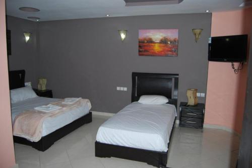 Located in Laayoune Dar Tassa is a 5-minute walk from the city centre. It features free Wi-Fi in in all areas a terrace and a snack bar.All accommodations are fitted with air-conditioning. They include a wardrobe and a flat-screen TV. Each room offers a private bathroom equipped with a shower.Guests can enjoy international dishes at the onsite restaurant. A range of drinks is provided at the bar.Laayoune International Airport is a 5-minute drive from the property.