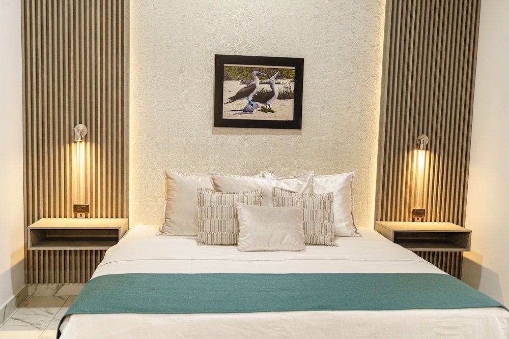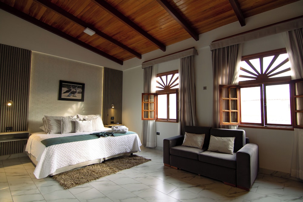 Featuring an outdoor swimming pool and a terrace Hotel Santa Fe offers free Wi-Fi and breakfast in Puerto Ayora. Malecon harbour is 30 metres away and Tortuga Bay beach is 25 km away.The rooms in Hotel Santa Fe feature private bathrooms. The suites feature kitchenettes and dining areas as well.American breakfast is served daily and includes seasonal fruits bread coffee or tea milk eggs and pancakes.Seymour Airport (in Baltra Island) is a 45-minute drive away.