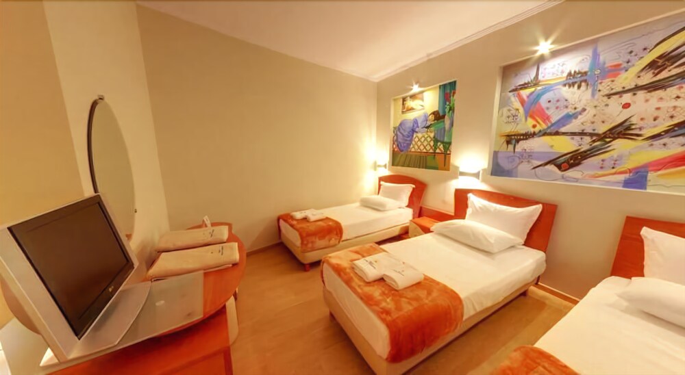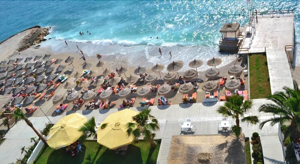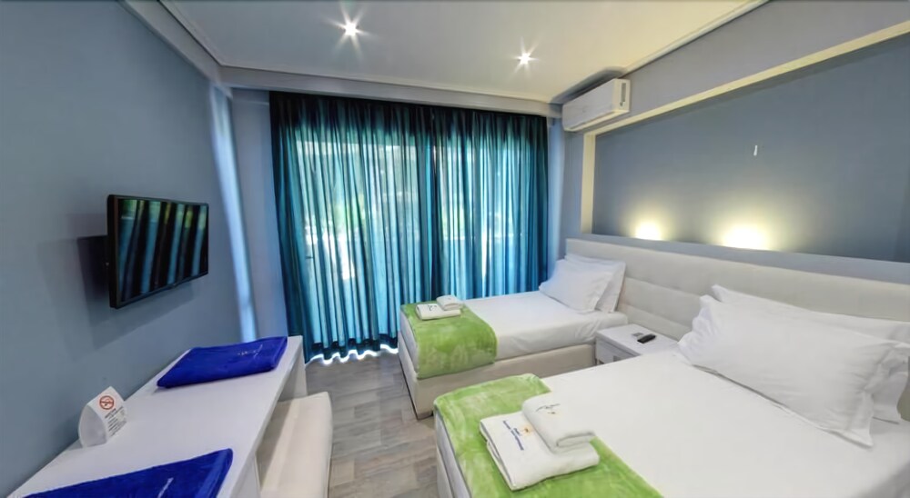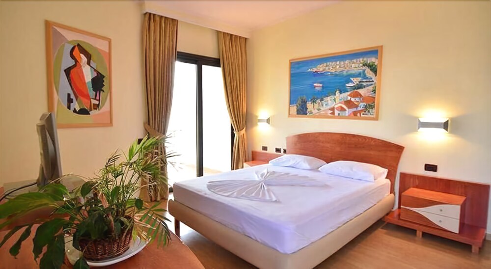 Facilities and services include restaurant, bar, parking, safe at reception, wireless Internet access and 24-hour reception.Rooms feature fridge, minibar, air conditioning, safe, wireless Internet access, TV, telephone, hairdryer and balcony or terrace.Address: Rruga Nacionale Sarande-Ksamil, 9701 Sarande, Albania.