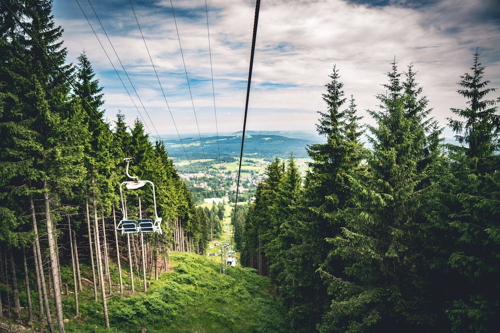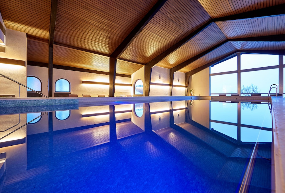 The hotel is located in the Ammergau region, at the foot of the Hörnle mountain, at a healthy altitude of nearly 3,000 feet with a breathtaking view.It offers 131 rooms, health farm, spa, massage parlours, indoor pool, sauna, fitness room, restaurants with terraces, bar, garden with a meadow, underground parking, 7 conference rooms ranging from 463 to 1,770 square feet.