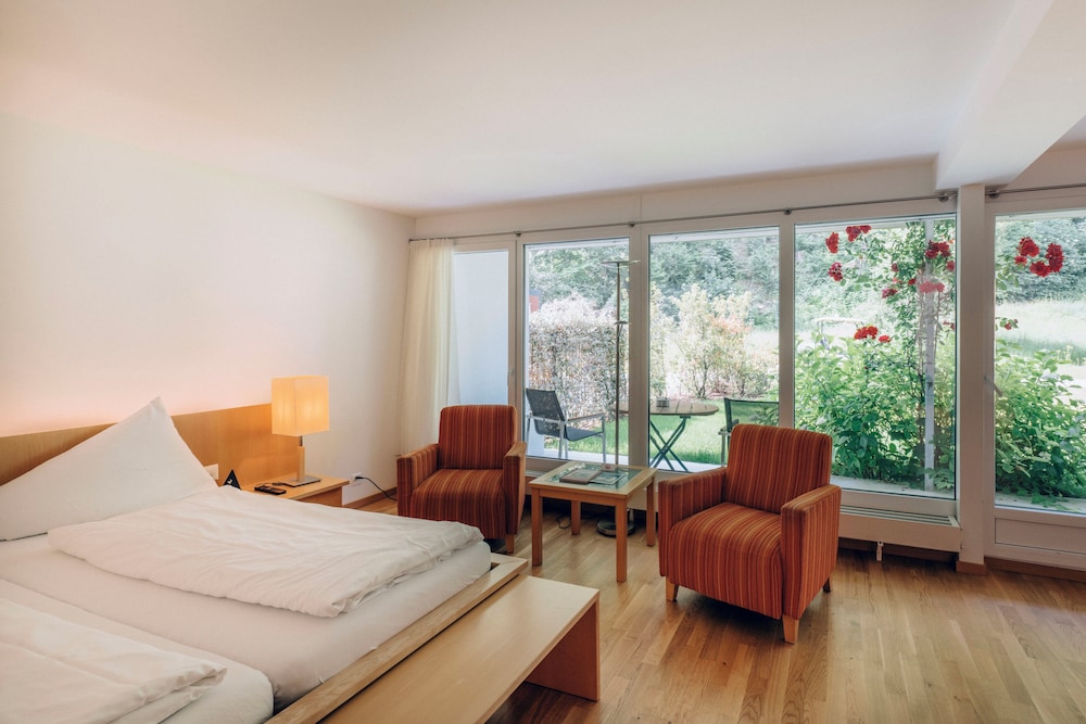 Surrounded by a large park Hotel Schloss Ragaz is located on the outskirts of Bad Ragaz next to the golf courses and the thermal spa centre. It offers a spa area and a heated outdoor pool.Located in a pavilion the spa area features a relaxation room a gym a sun bed a hot tub massage showers a Finnish sauna and steam and aroma baths. Massages and beauty treatments are available.The traditionally furnished rooms at the Schloss Ragaz Hotel include a TV and a bathroom. They are situated in the main building and in pavilions in the park.The restaurant serves Swiss and international cuisine and a daily breakfast buffet. Free private parking is available on site.Guests of Hotel Schloss Ragaz can purchase reduced entrance tickets to the Tamina Therme which is 200 metres from the property at reception.