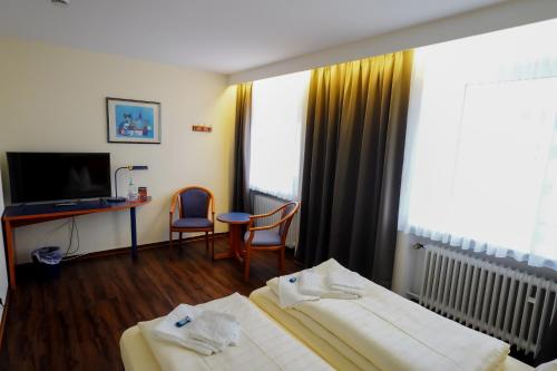 This hotel in Daun offers free Wi-Fi and is an ideal base for exploring the volcanic Eifel region. It offers 2 restaurants and there is a swimming pool and gym directly next door.Each room at the Hotel Stadt Daun includes a TV and a private bathroom.Maar Y Sol is a Mediterranean-style café and lounge where breakfast and a wide selection of drinks and snacks are served. In good weather guests can eat in the beer garden overlooking Daun's promenade.The exclusive Rengener Stübchen restaurant features a classic 19th-century design with a glass-covered terrace and beautiful views of the Eifel countryside. A la carte regional German dishes are served here.The Stadt Daun is a 3-minute walk from the Vulkanmuseum. The famous Nürburgring race track can be reached by car in 30 minutes.