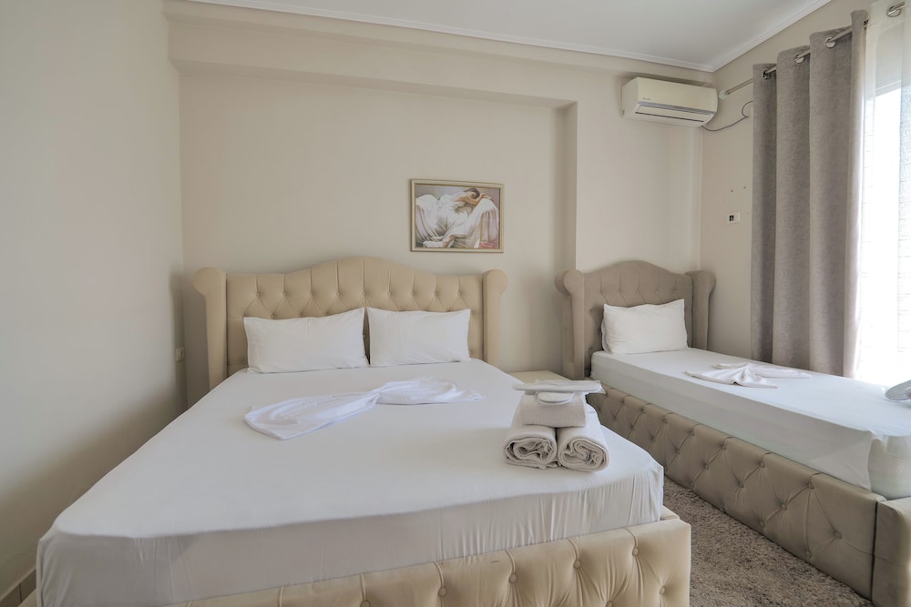 With a stay at Hotel Sunrays in Sarande, you'll be on the beach and within the region of Butrint and Butrint National Park. This hotel is within the region of Ali Pasha Castle and Blue Eye Spring.Rooms Make yourself at home in one of the air-conditioned rooms featuring flat-screen televisions. Complimentary wireless Internet access keeps you connected, and cable programming is available for your entertainment. Bathrooms have showers and complimentary toiletries. Conveniences include irons/ironing boards, housekeeping is provided daily, and refrigerators can be requested.Amenities Take in the views from a terrace and a garden and make use of amenities such as complimentary wireless Internet access.Dining Enjoy a satisfying meal at a restaurant serving guests of Hotel Sunrays. Quench your thirst with your favorite drink at a bar/lounge.Business, Other Amenities Featured amenities include dry cleaning/laundry services, a 24-hour front desk, and laundry facilities. Free self parking is available onsite.