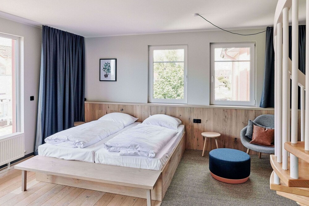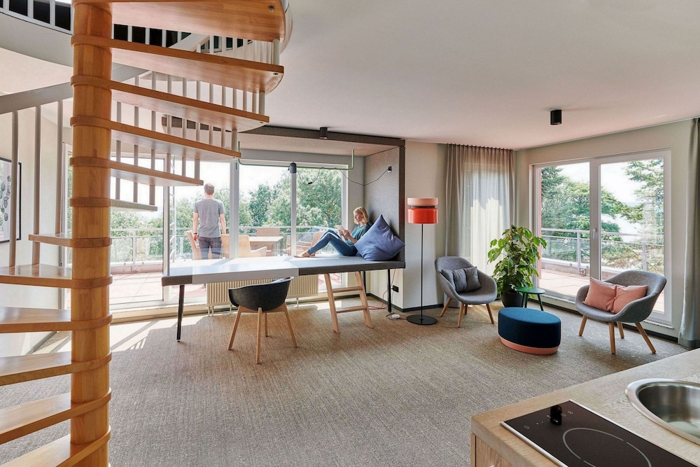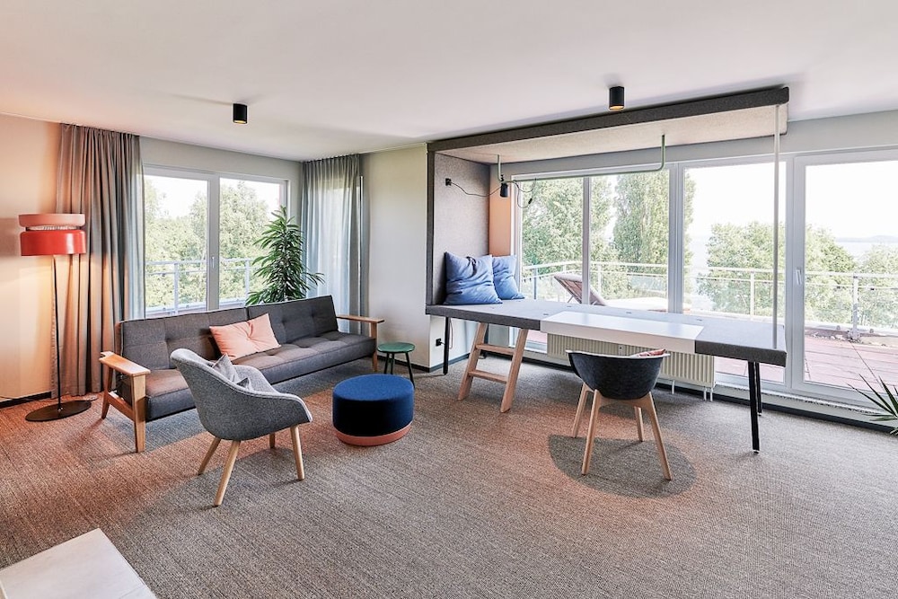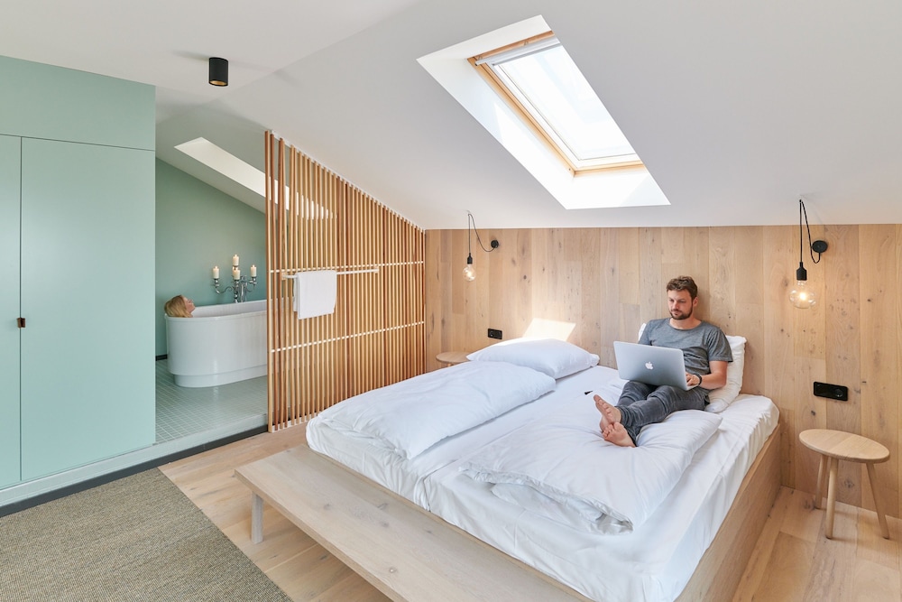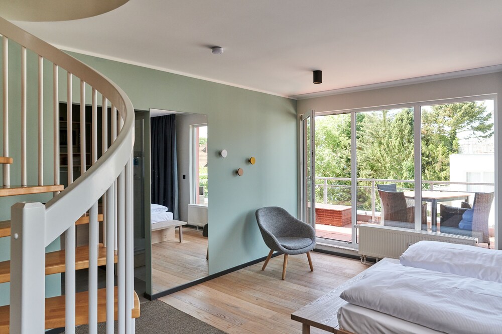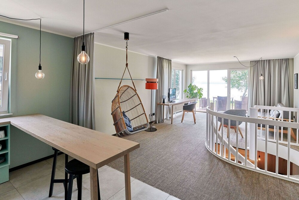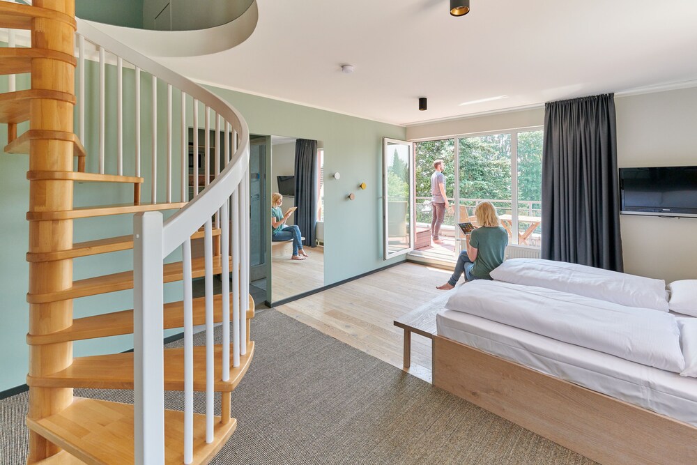 This elegant hotel is located on the banks of the Plöner See Lake in Ascheberg, in the beautiful countryside of Holstein Switzerland. The hotel is surrounded by hills and forests, and offers tranquil, well-appointed rooms and apartments where guests can relax in peace and quiet. Each room and apartment comes with a kitchenette and living area with free internet access, and some rooms feature breath-taking lake views from the private balcony. Guests can wake up to a rich and varied buffet breakfast in the restaurant, which serves modern organic dishes indoors or on the rooftop terrace. The hotel also boasts a wellness centre with indoor pool, three saunas, Thalasso therapy pool, massages and yoga classes, all for a wonderfully relaxing holiday in the countryside.