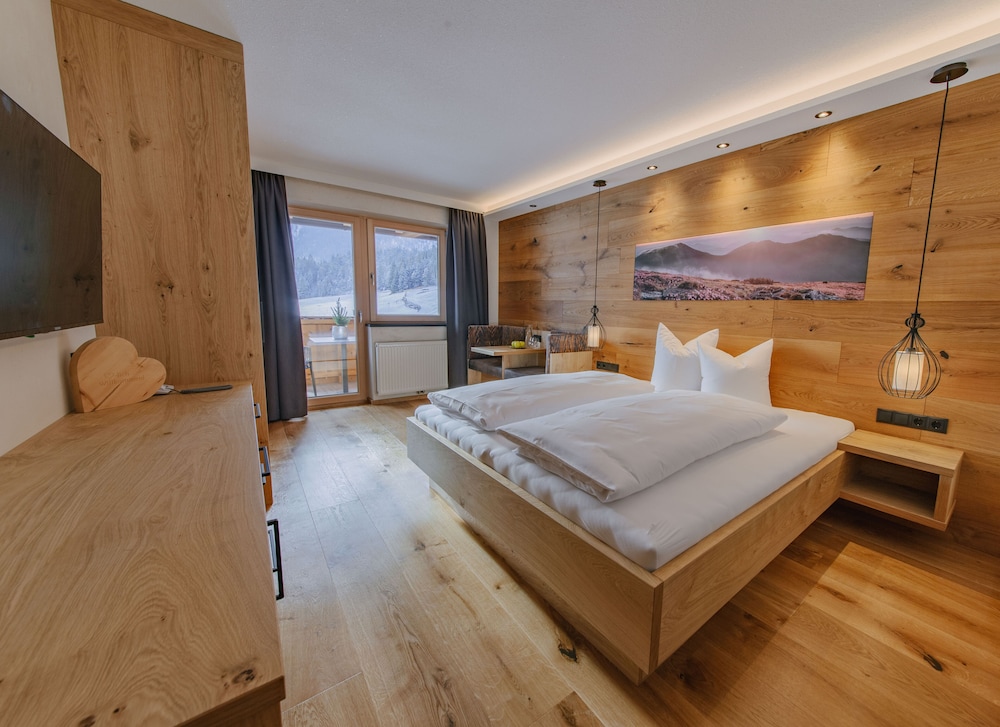 Hotel with a romantic flair located in an idyllic area with a beautiful view of the Achentaler mountains. The railway station Jenbach is aprox. 20 km and the Ski area of Christlum 70 m far away. There are shopping possibilities near the hotel 100 m. The hotel facilities includes reception, elevator, restaurant, bar, sun terrace, wellness area with sauna, quiet room, fitness room, solarium and massage on request and with extra charge. The non smoking rooms are equipped with private bathroom WC/shower, hair dryer, sat TV, telephone, internet connection, balcony or terrace. Address: Nr. 104, 6215 Achenkirch, Austria