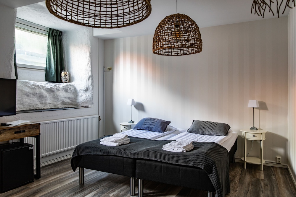 This hotel faces a quiet street 150 metres from Visby's main square Stora Torget. WiFi access is free. Staff will gladly offer useful insider tips.Private bathrooms refrigerators and cable TV are standard in Hotell Gute's rooms. They feature traditional décor and individual design.The lobby has comfortable leather seats free coffee and cookies as well as a full bar. A breakfast room and internet computer are also found there. The breakfast buffet includes fresh homemade bread and special diet options.Gute Hotell is 350 metres from the 12th-century Visby Cathedral.