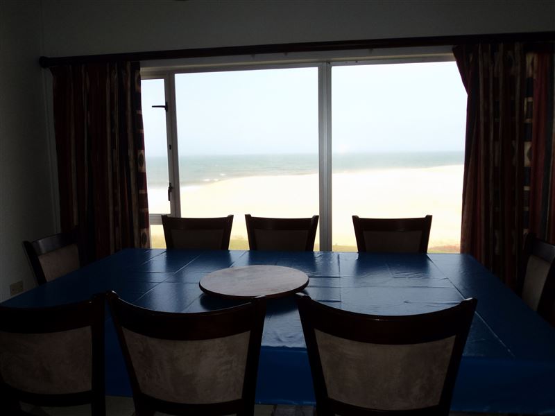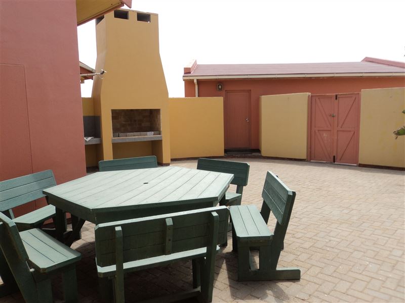 Stubenrauch offers comfortable self-catering accommodation in a three bedroom house in Henties Bay. The property is close to the sea and guests can enjoy sea views from the house.The house has three bedrooms, three bathrooms, a kitchen, lounge and dining area. The first bedroom has a double bed and the second and third bedrooms each have two single beds.The kitchen has a fridge and a microwave, and the lounge and dining area have a fireplace and a dining table with chairs.The house offers an indoor reception area, braai facilities and a double garage for sec