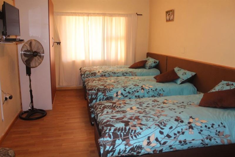 House of Ephraim is a self-catering guest house located in the central suburb of Kensington in Cape Town. It comprises one en-suite bedroom with twin beds and one family unit. .The family unit has one double en-suite room and a connecting room with 3 single beds; this unit sleeps 5 guests comfortably. Each room is equipped with a fan, a heater and a TV. The lounge and kitchen are both communal and there is an outdoor entertainment area with a barbecue facility. Parking is secure and Internet is available. Guests can enjoy complimentary tea, coffee and cereal. Table tennis and darts on site