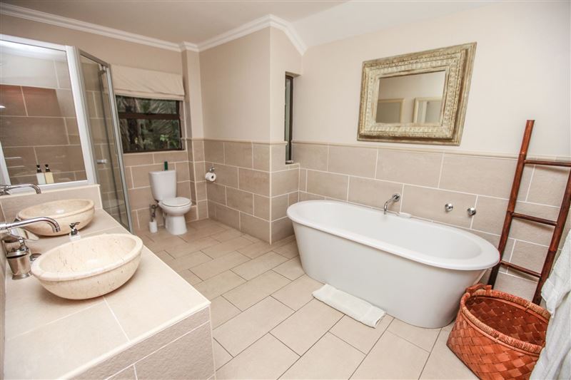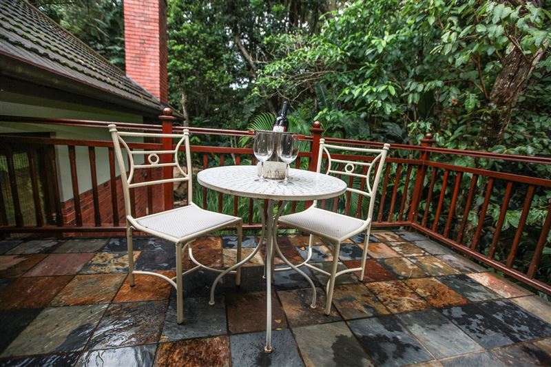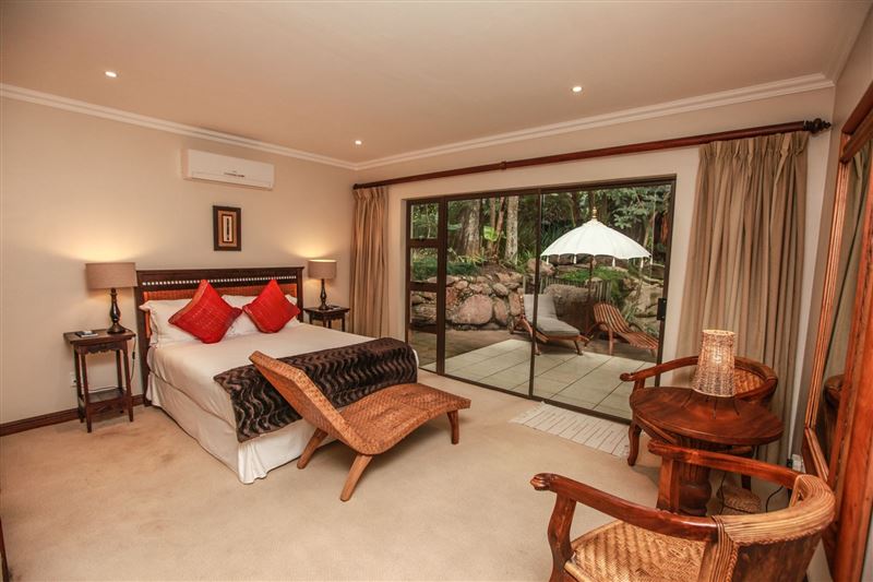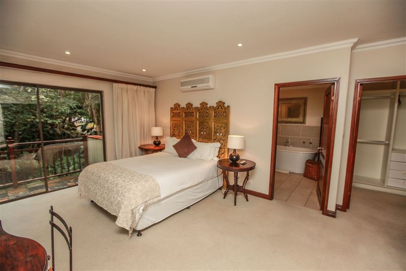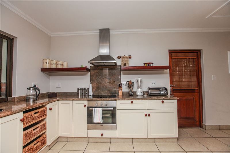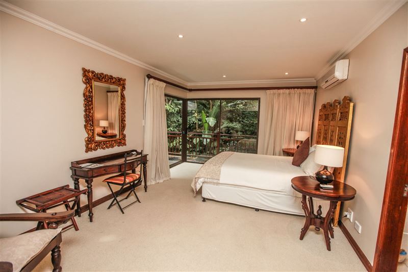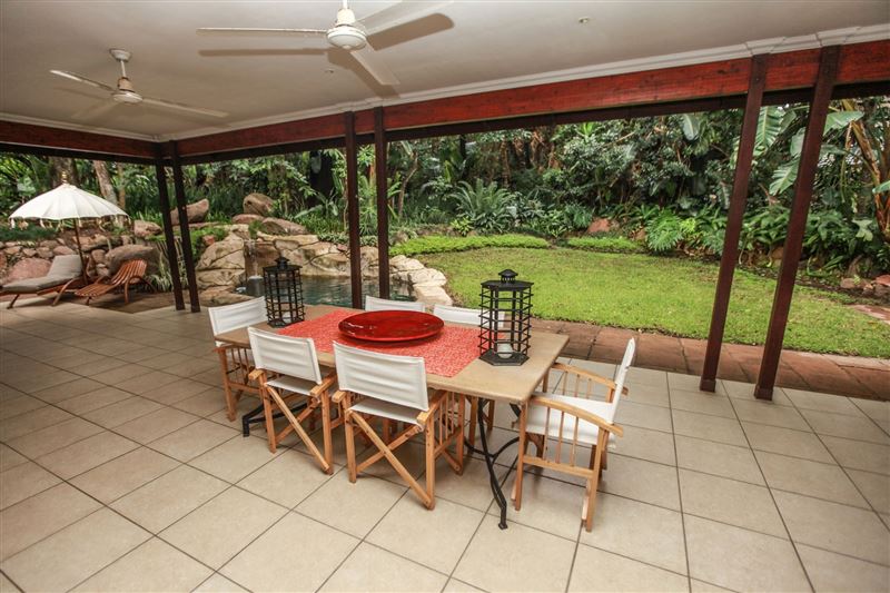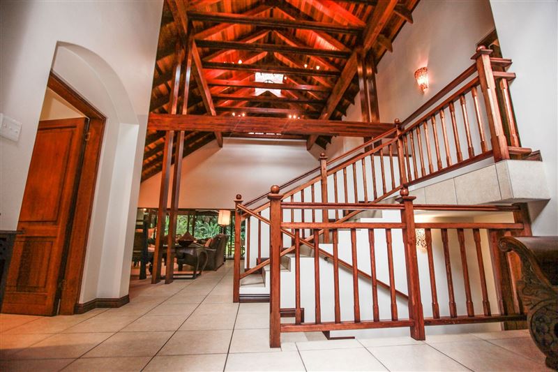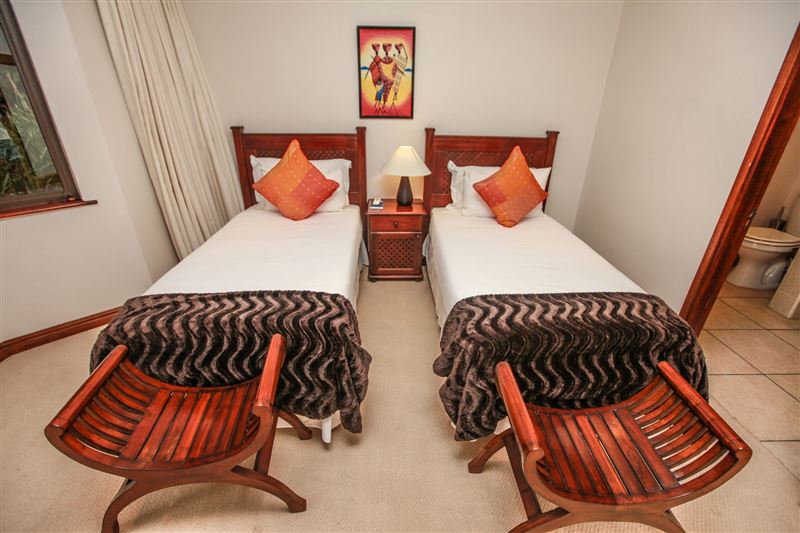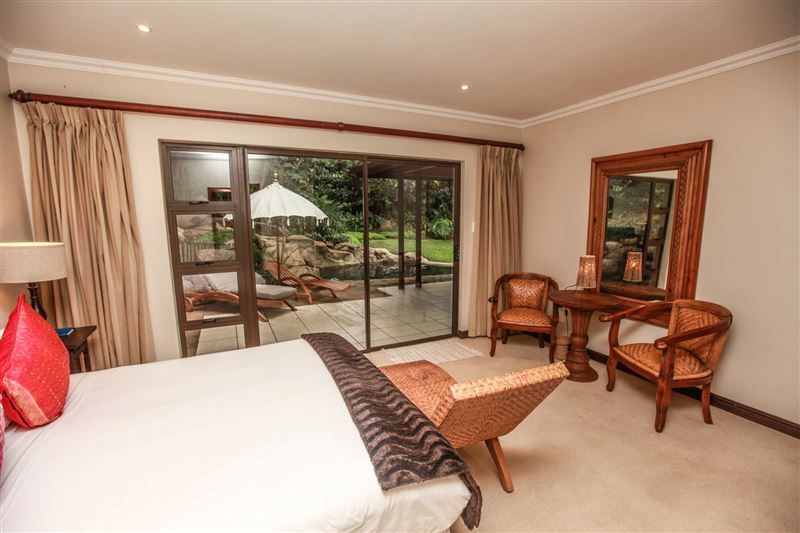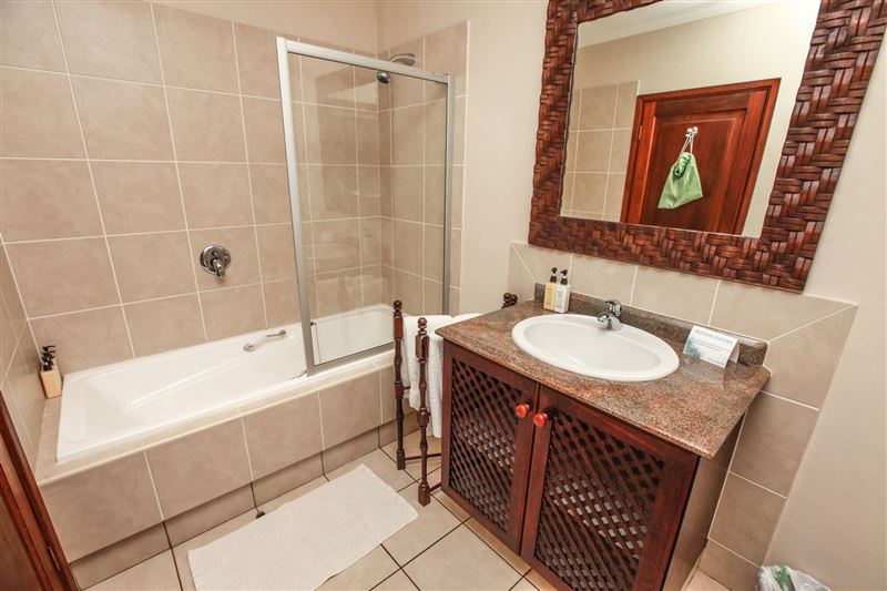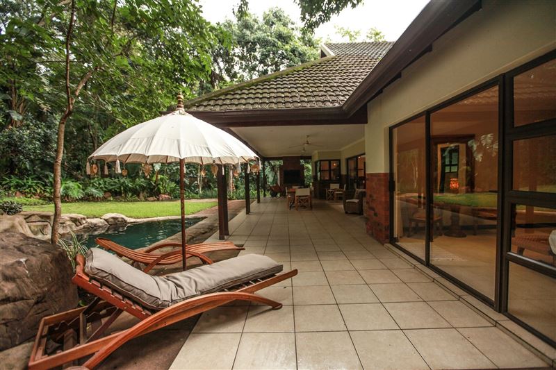 iMphiti Lodge is a three bedroom villa situated in Selborne Park Golf Estate on the South Coast of KwaZulu-Natal. The self-catering villa offers comfortable accommodation with all the modern luxuries for a family of six.The house has three spacious en suite bedrooms, a large open-plan living area, and lush garden. The open-plan lounge is elegantly furnished in dark wood and has large glass doors that open out to the garden area. The dining area, off the lounge, has an eight-seater dining room table. Semi-divided from the lounge and dining area by a small breakfast nook, is a spacio