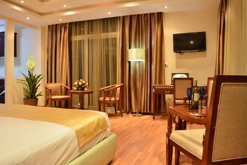 With a stay at Impress Hotel in Addis Ababa (Bole), you'll be a 3-minute walk from Medhane Alem Church and 8 minutes by foot from Edna Mall. This hotel is 1.3 mi (2 km) from World Bank Ethiopia and 2.6 mi (4.1 km) from ECA Conference Center. Make yourself at home in one of the 22 guestrooms, featuring kitchenettes with refrigerators and ovens. Rooms have private balconies. Complimentary wireless Internet access keeps you connected, and satellite programming is available for your entertainment. Conveniences include phones, as well as separate sitting areas and coffee/tea makers. Take in the views from a rooftop terrace and make use of amenities such as complimentary wireless Internet access and concierge services. Guests can catch a ride to nearby destinations on the area shuttle (surcharge). Stop by the hotel's restaurant for lunch or dinner, or grab snacks at the coffee shop/café. Wrap up your day with a drink at the bar/lounge. A complimentary buffet breakfast is served daily from 7 AM to 10 AM. Featured amenities include a 24-hour business center, complimentary newspapers in the lobby, and dry cleaning/laundry services. A roundtrip airport shuttle is complimentary (available on request).