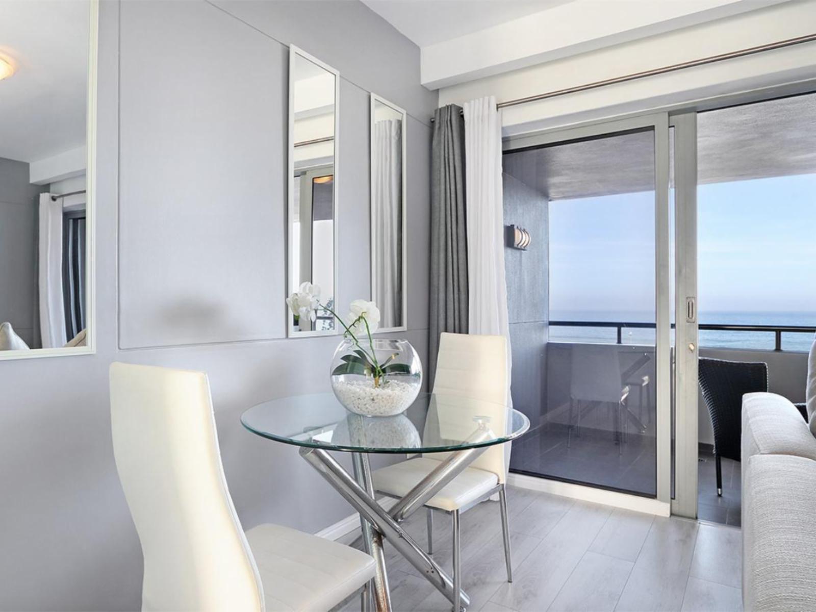 Spend a private and relaxing stay in this lovely 1-bedroom apartment in the beautiful coastal area of Bloubergstrand, just a few minutes walk from the coast. This charming unit has all the right features for a secluded self-catering holiday experience along the Atlantic Seaboard.The cosy main interior is open plan, with a kitchen leading to a moderately sized dining area, a lounge and sliding doors that lead out to a balcony. The sleek kitchen is fully equipped, including a stove, oven, microwave and fridge. The casual dining area comfortably seats 2 around a round glass table. Sit