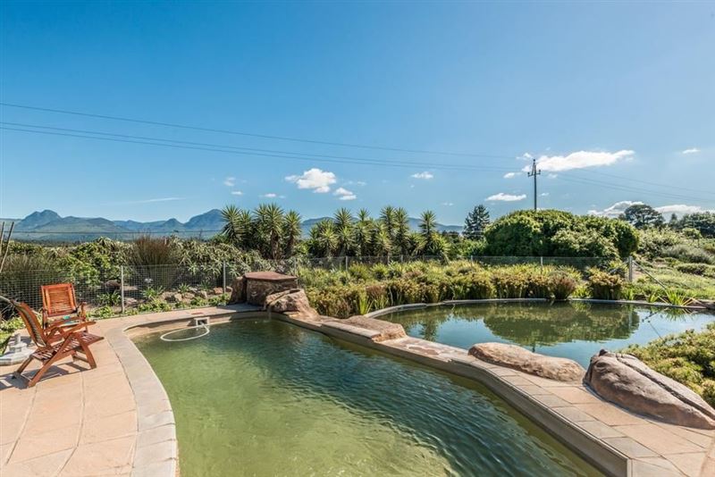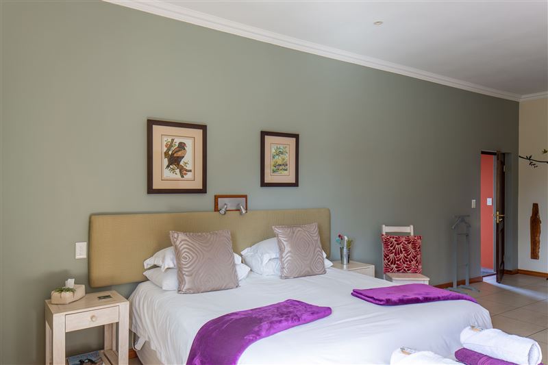 It is hard to imagine a finer setting for a guest house than at the foot of the majestic Outeniqua Mountains, close to the popular beach resort of Victoria Bay. Inn Victori is a brand new establishment surrounded by one-hectare of lush fynbos garden, offering four luxury double rooms. The guest house provides a countryside experience, with its typical features of open space, bird life and star-gazing blending uniquely with the ambience of contemporary living. Meticulous thought has been given to the lay-out, quality of materials and decoration of the four guest rooms. Each room features a k