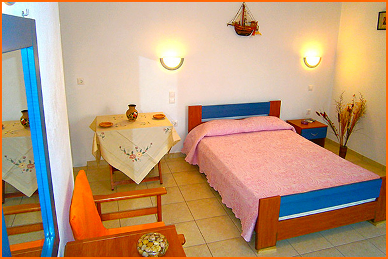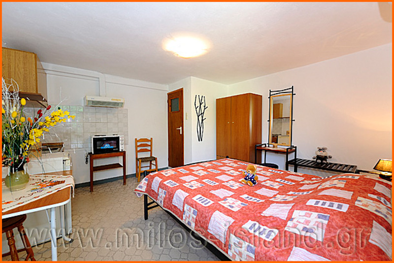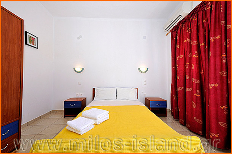The «Iremia» rooms are located in Perivolia, a quiet spot in Adamas, surrounded by lush greenery. They are just 1 km from the harbor and 200 meters from the sea.They boast a view of the harbor, the beach and the center of the village.The rooms are equipped with a refrigerator, air-conditioning, and a TV. Half of them offer a veranda of 120 square meters, and the other rooms have a balcony at your disposal.