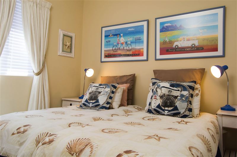 This self-catering apartment is 100m from the beach. It sleeps four adults and two children. It has a view of Table Mountain from the balcony. (No sea view)