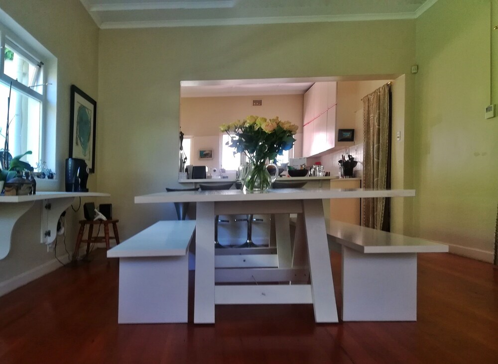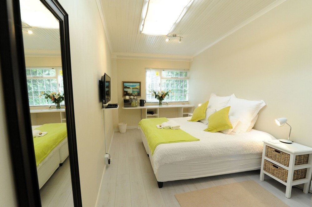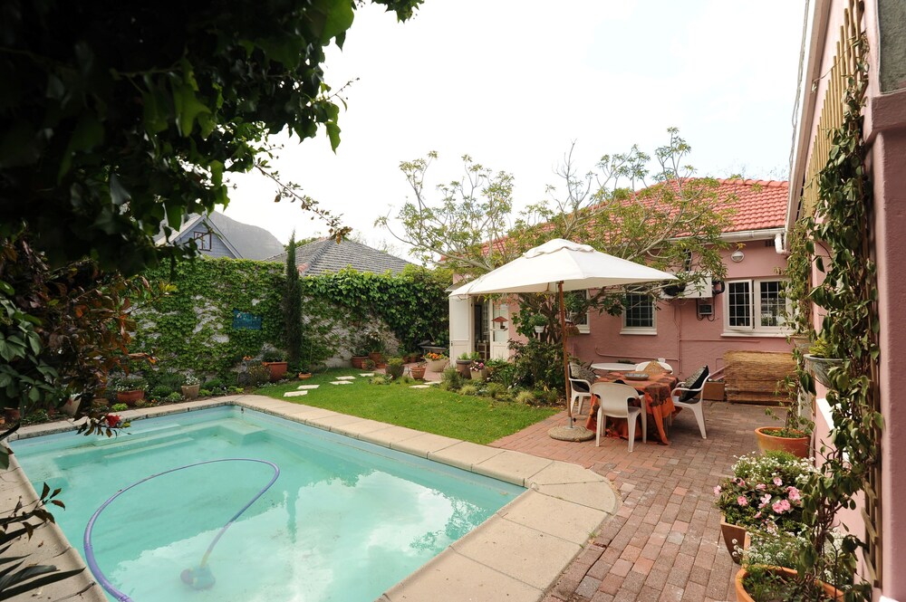 Jaqui’s Garden Guesthouse sits in the heart of Cape Town’s leafy, green and lush southern Suburbs. It has a perfect location right next to the Vineyard Hotel and a 5 minute walk from Claremont’s Cavendish Square.The guest house offers four en-suite rooms, all with tea and coffee-making facilities, fans, TVs with DStv and Wi-Fi access. The rooms are serviced daily, laundry services are available and dinner is available on request. The guest house has a comfortably furnished guest lounge which looks out onto the garden, and where breakfast is served. There is also a swimming pool and