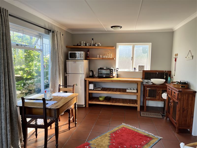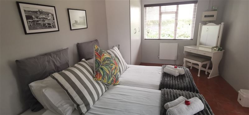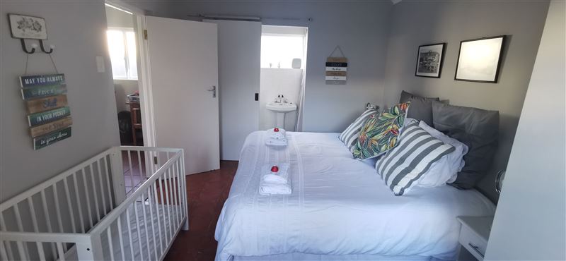 Jasmine Cottage is a private, self-catering apartment with secure, undercover, off-road parking in sought after Eastcliff, Hermanus. It is separate from the main house and is within walking distance to the centre of town, old harbour, cliff path and whale watching spots. It is relaxed, friendly and informal and has everything you need.There is one bedroom with twin beds and ample cupboard space for clothes. A cot with a mattress can be provided for a baby or a young child under three-years old; a high chair is also available. The bathroom has a shower, a basin and a toilet. There i
