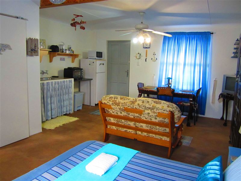Situated in the fishing town of St Helena Bay, guests will find Journey’s End. This lovely self-catering open plan (studio type - no separate rooms) unit is located on a one and half hectare small holding on the beautiful hill Britannica Heights on the St. Helena bay peninsula and offers breathtaking views and sunsets over a valley, Paternoster and the ocean in the distance. Rich in nature and birdlife. Perfect for a break away from the busy hustle of city life, if you are looking for peace and serenity. Only 5 min drive (down the hill) from the closest beach, Sandy Point, St. Helena Bay ha