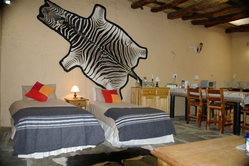 Karoo Pred-A-Tours is a lovely game farm in the malaria-free Karoo countryside north west of the historic little town of Cradock and offers guests the chance to visit South Africa’s smaller and less known feline predators.Karoo Pred-A-Tours offers guests a choice of comfortable self-catering and B&B accommodation; the Rondavels, the Bush Cottages and the Camping Grounds. The thatched Rondavels combined can sleep seven guests and consists three en-suite bedrooms. The rooms are furnished with single beds and the en-suite bathrooms that have a shower. Bedding, towels, soap and toilet paper is