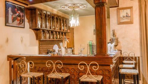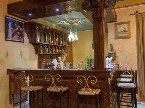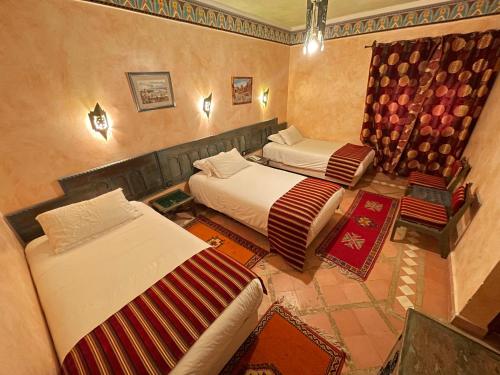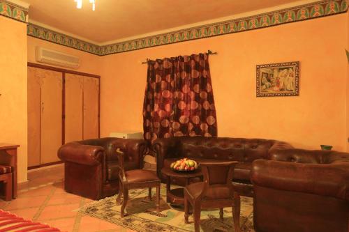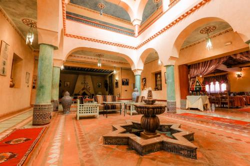 The hotel is located in the tourist zone of the town of Tinghir, situated at the feet of the High Atlas mountains, 15 km away from the famous Todra Gorge. Ouarzazate is around 17 km away and Dadès Gorge is some 50 km away.Built and decorated in the pure architectural tradition of the Moroccan South, this air-conditioned hotel provides 21 comfortable and spacious rooms and 1 suite. Guests can relax at the edge of the swimming pool in the middle of a very pleasant leafy setting.The hotel provides a total of 22 rooms, which are very comfortable and which can all be furnished with extra beds. They are equipped with a complete bathroom with shower and bath, a hairdryer, individual air conditioner, TV and telephone, double or king-size beds, Internet access, a minibar and balcony or terrace. The patio style garden offers views of the former medina.The hotel offers three restaurants: Moroccan and international cuisine and a big Bedouin tent, which offer a plentiful variety of dishes.The hotel is on Mohammed V Avenue near the beginning of Tinghir, on the left when arriving from Ouarzazate.