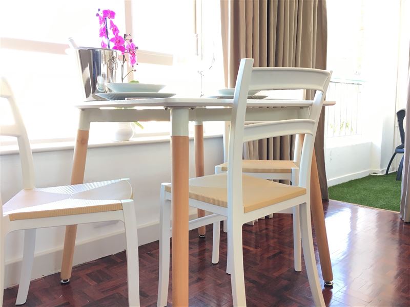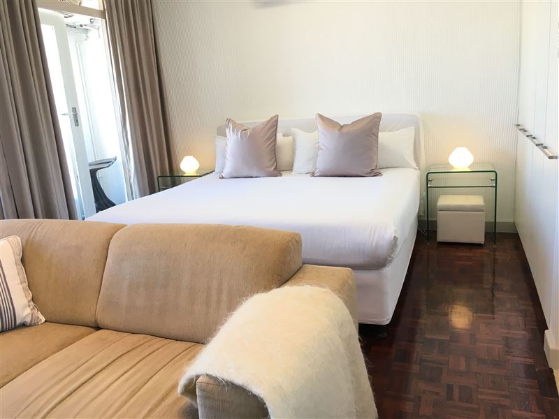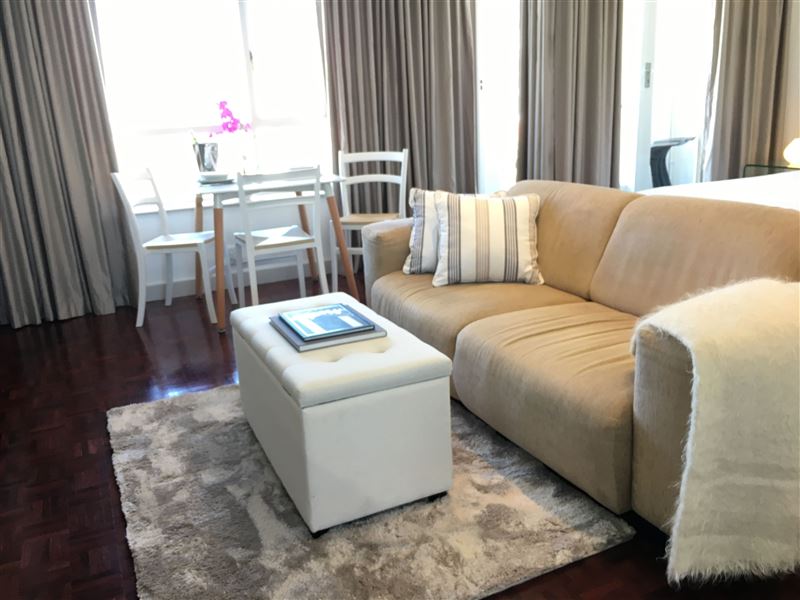 This modern and sunny studio apartment, is located on the top floor and enjoys fantastic views of Signal Hill, the V&A Waterfront and the mother city, from the open balcony.This air-conditioned 45 m2 apartment sleeps up to two guests and it comes with a secure, reserved parking. The kitchen is well equipped and inclusive of a washing machine, microwave and much more.In the lounge area you have a 32-inch LED TV with Satellite channels and a DVD player. Included in the price is free super fast fibre internet Wi-fi.Ideally situated, the apartment is just a two minutes’ walk from a number of resta