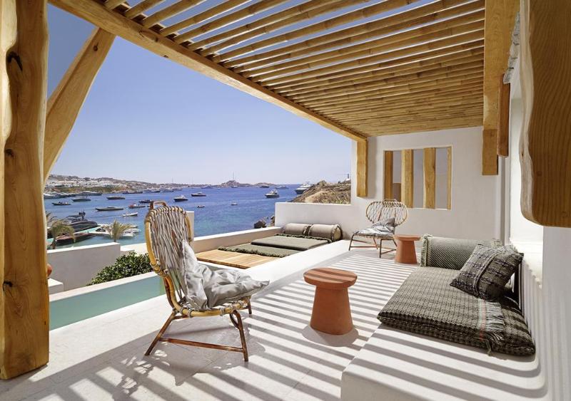 Built with respect to the Aegean architecture Kensho Psarou is located in Psarou Beach of Mykonos Island, just a few metres of the sea. Featuring a restaurant serving Mediterranean cuisine, this property also provides guests with an outdoor pool and a hot tub. Fitted with local stone and aged wood, the accommodation is of elegant design. Free private parking is also available.Offering either Aegean Sea views, a hot tub or a private plunge pool, all air-conditioned units come with a desk and a flat-screen TV. The private bathroom is equipped with a shower. Free WiFi is available.An à la carte b