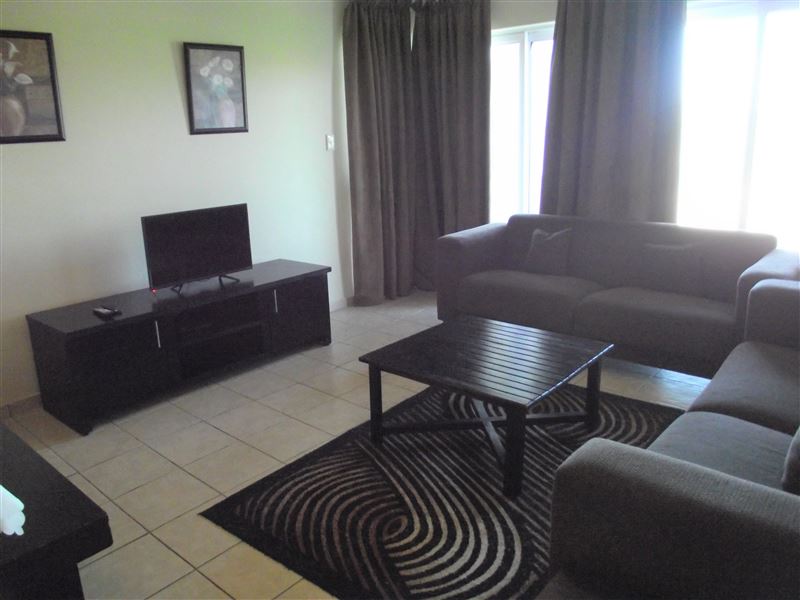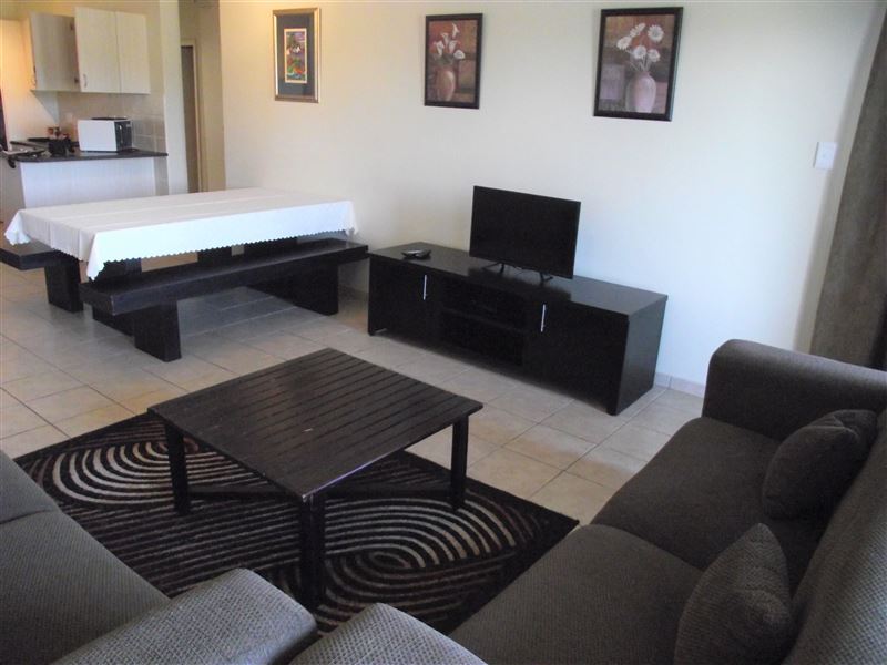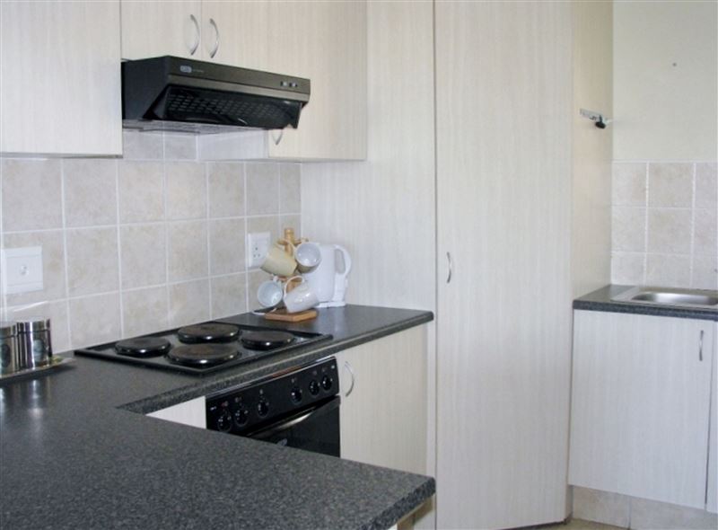 The unit has two bedrooms and two bathrooms. There is a fully equipped kitchen with a washing machine and a dishwasher. No DStv; bring your own. Ceiling fans in lounge and main bedroom. Guests can enjoy the communal braai and swimming pool in the complex.