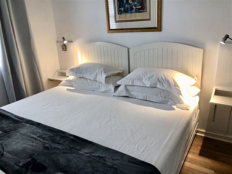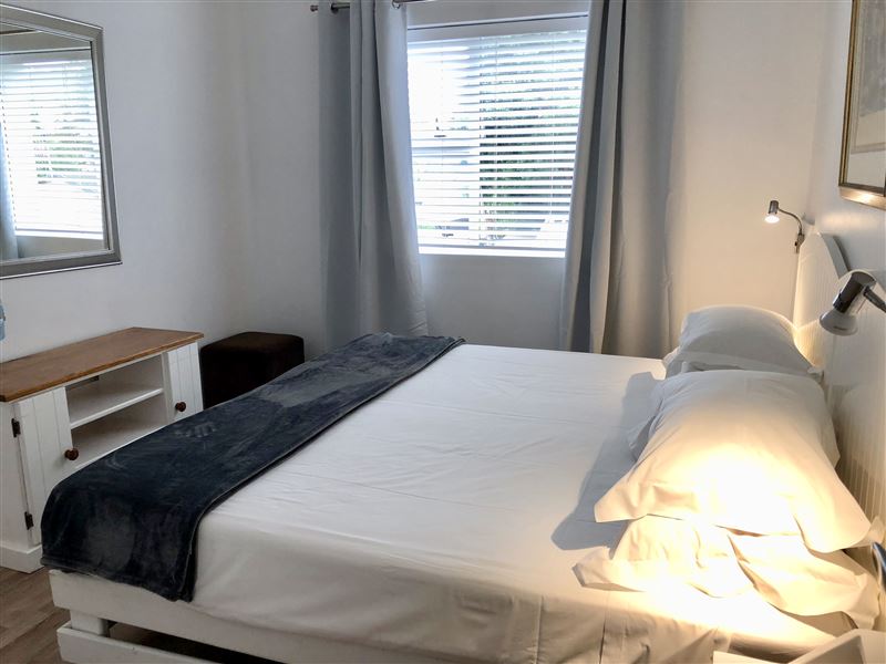 Knysna Pocket Breaks Unit 3 is a secure self-catering apartment situated in Knysna Central. The apartment offers comfortable accommodation ideal for a family, and is ideally situated within walking distance to the Knysna Waterfront and a variety of restaurants.The apartment features an air-conditioner in the living area and fans in both bedrooms. The kitchen is fully equipped and fitted with a gas hob, convection microwave and a fridge-freezer. The modern living room has a comfortable sofa, facing a flat screen TV with DStv and a Blu-ray player. There is a small balcony with a tabl