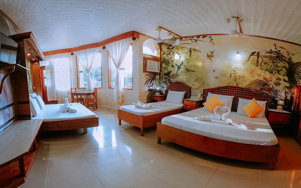 When you stay at KokosNuss Garden Resort in Coron, you'll be by the sea and convenient to Mount Tapyas and Iglesia ni Cristo. This resort is within close proximity of Coron Central Plaza and Bayside Plaza.Rooms Make yourself at home in one of the 36 individually decorated guestrooms. Rooms have private balconies or patios. Cable television is provided for your entertainment. Conveniences include desks and ceiling fans, and housekeeping is provided daily. Treat yourself with massages, body treatments, and facials. Additional amenities include complimentary wireless Internet access, concierge services, and babysitting/childcare (surcharge). Guests can get around on the shuttle (surcharge), which operates within 16 km.Dining Enjoy a meal at a restaurant or in a coffee shop/café. Or stay in and take advantage of the resort's room service (during limited hours).Business, Other Amenities Featured amenities include a business center, limo/town car service, and express check-in. For a surcharge, guests may use a roundtrip airport shuttle (available 24 hours) and a cruise ship terminal shuttle.