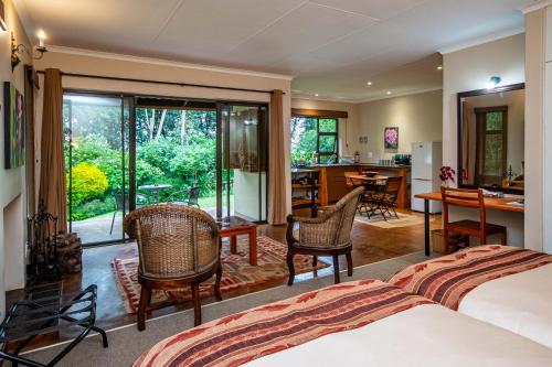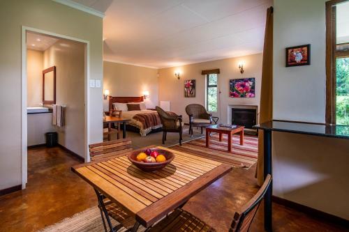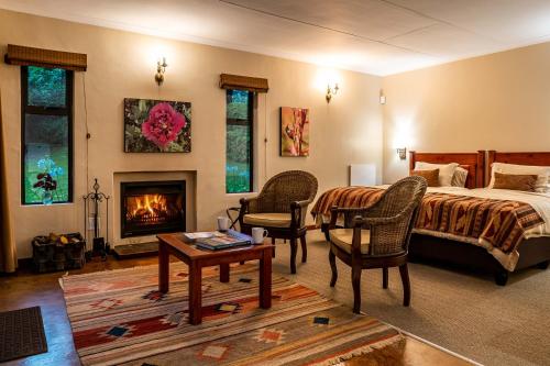 All six units are fully furnished, queen or two three-quarter beds, with its own en-suite bathroom including a heated towel rail. The family unit has a small separate room with a bunkbed suitable for 2 children under the age of 10. Our new cottage comprises two en suite bedrooms, with queen size beds, with a shared kitchen, dinning and lounge area. It is situated in the avocado and raspberry orchard with a beautiful view of the Wolkberg Mountains.Serviced daily, each unit is tastefully furnished with easy chairs in front of a wood-burning fireplace and a fully equipped, quality kitchen.<