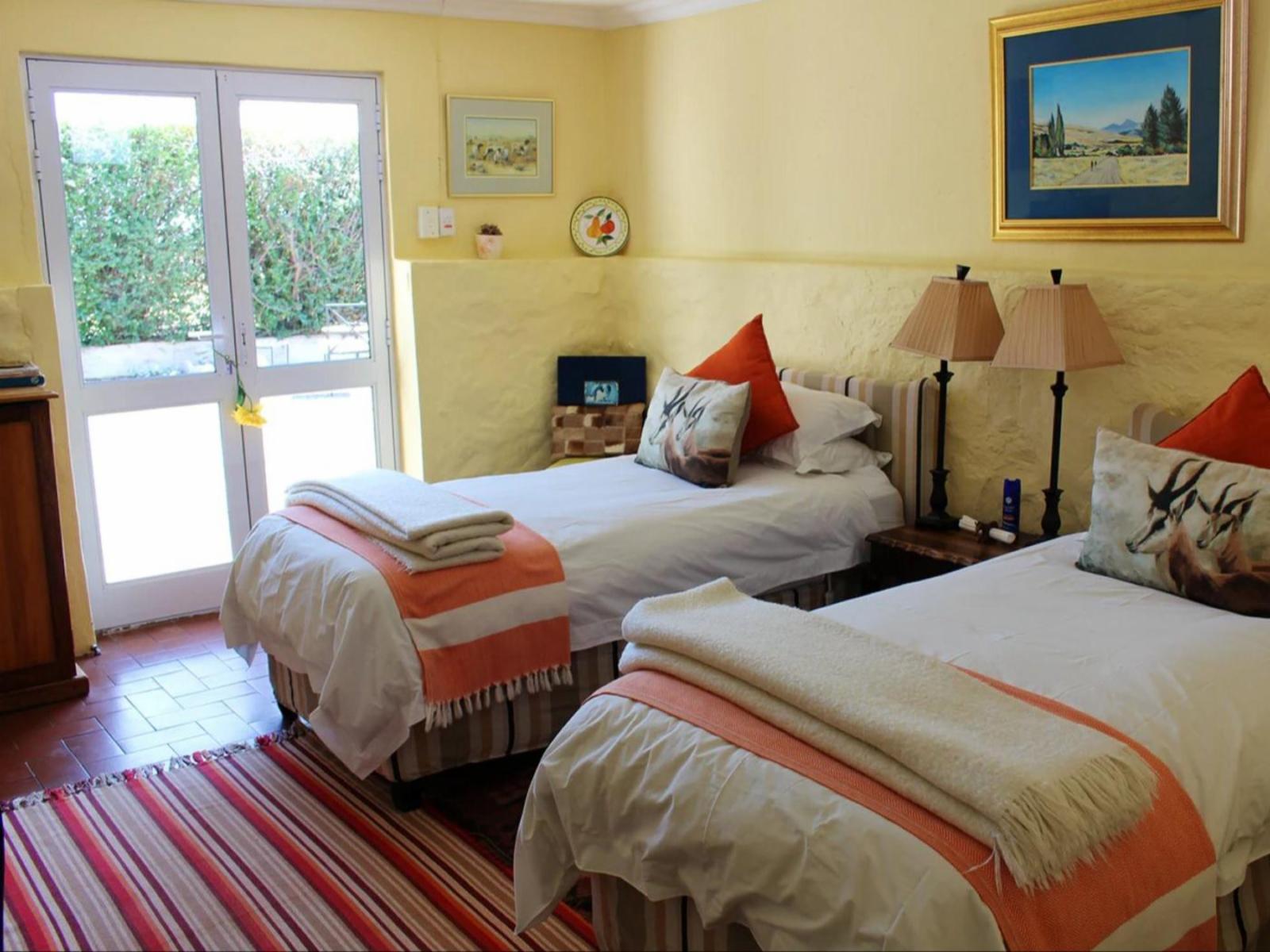 The feed room was the original feed and tack room of the stable block. A fusion of country and contemporary cuisine is served on gleaming yellowwood tables by a resident chef using the farm's produce whenever possible. Start your day with a health breakfast of cereals, muffins and scones, farm butter, and homemade jam. And for winter dinners, treat yourself to the farm's specialty of succulent Karoo lamb or venison.