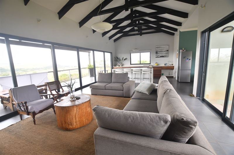 Kya Bella is a charming self-catering house situated in the Zini River Estate, in Mtunzini. It has easy access to the beach, bush walks and a river.The house consists of three bedrooms, two bathrooms, an open-plan living area with a TV, and a fully equipped kitchen (Big stove and oven, microwave, toaster, Bodum, slow cooker, snackwich maker, weber Braai etc). There is a covered play area for kids, with a trampoline and a jungle gym.Guests can relax on the spacious patio leading from the lounge area, overlooking the hills and river. This is the ideal accommodation for a family or a group of