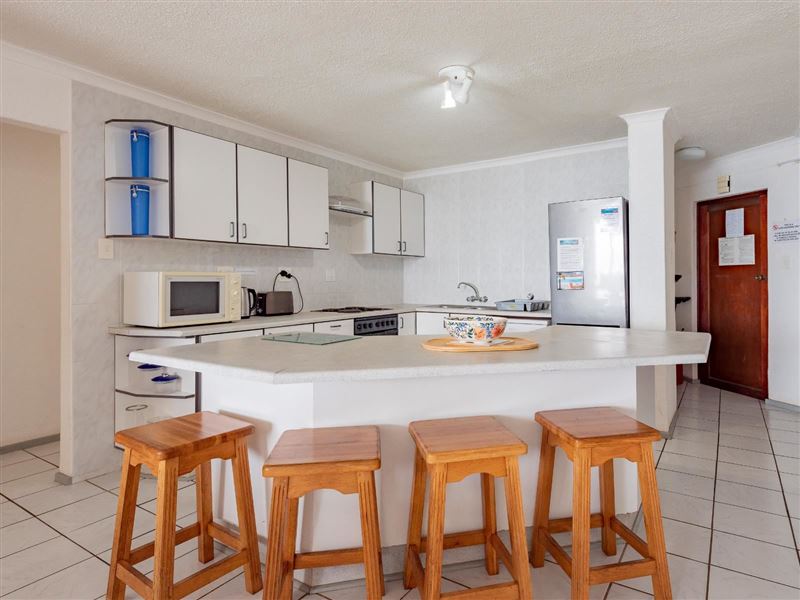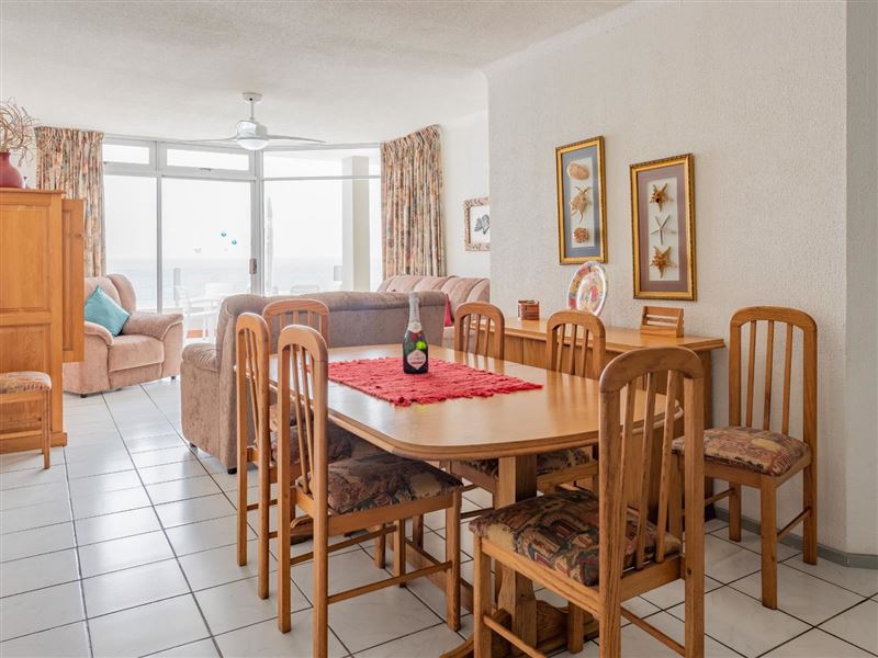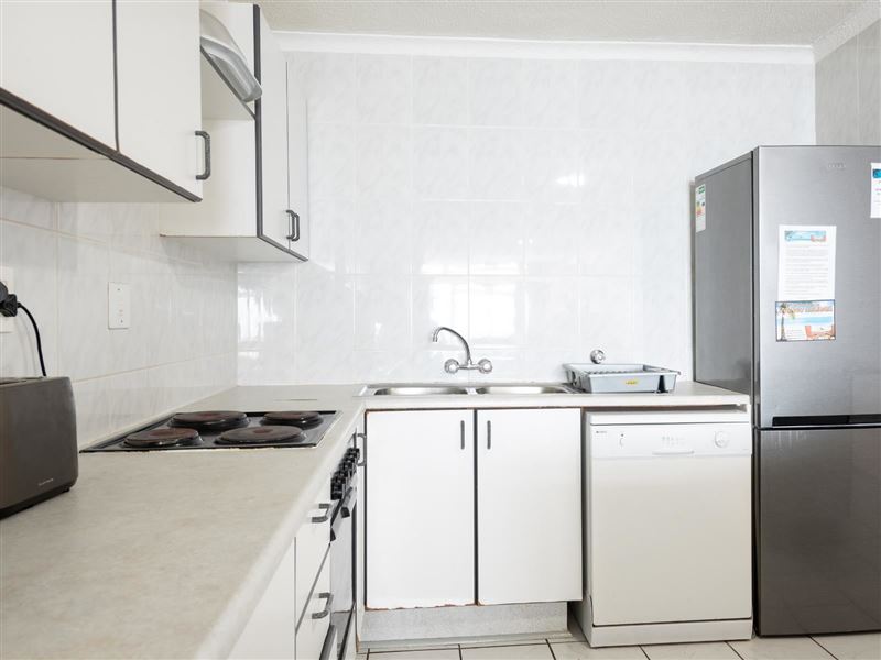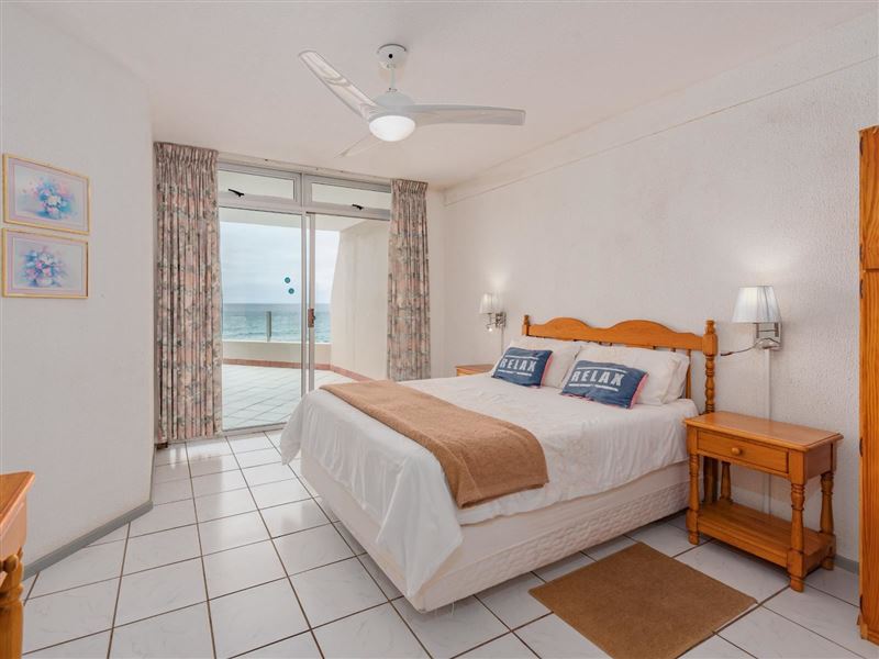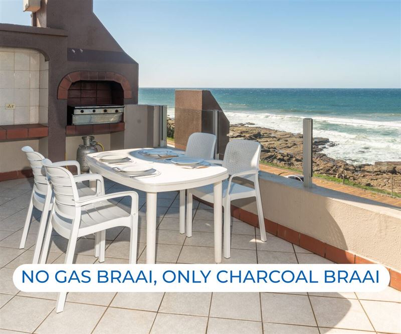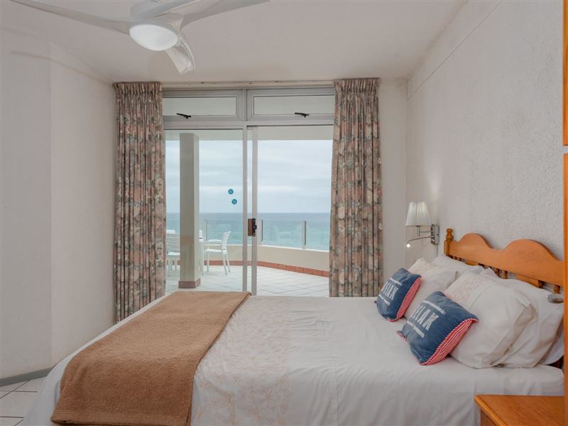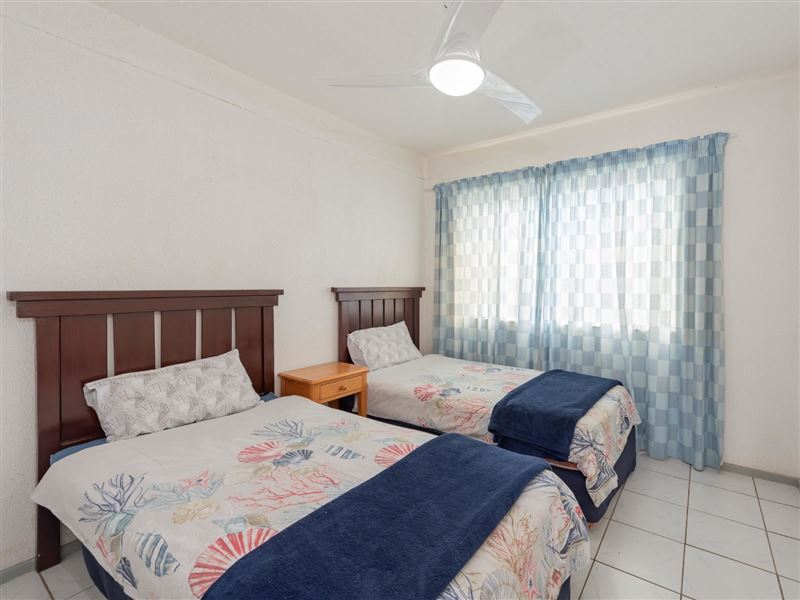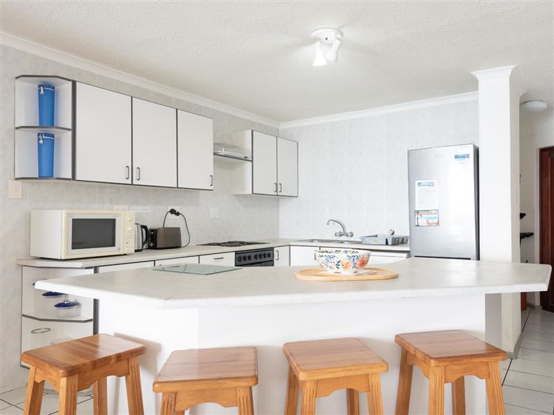 La Crete Sands 5 is a beautiful safe holiday apartment, located in Uvongo, it is approximately 50 metres from the beach. The complex has 24-hour security. The charming furnished apartment sleeps six guests and has three bedrooms and two full bathrooms. There are ceiling fans in the bedrooms and lounge. The unit comprises an open-plan kitchen, dining room and sea-facing lounge. A TV with DStv- PVR decoder is available. The sliding doors lead to an individual balcony with your own braai facility. There is a communal swimming pool in the complex.The modern kitchen has gran
