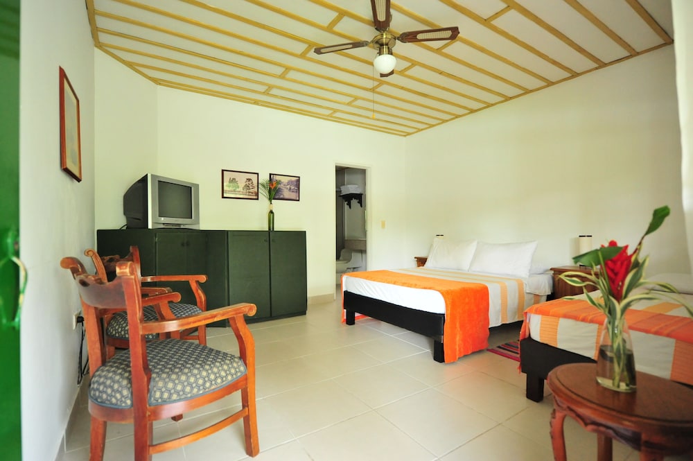 This former country farm offers spacious rooms an outdoor swimming pool and free Wi-Fi. It is located 7 minutes by car from the ArmeniaŽs centre on the road to Eden Airport.Accommodation at La Floresta Hotel Campestre features a rustic décor. They are practical equipped with cable TV and minibar. The private bathrooms have showers.Dining options include La Terraza gourmet restaurant which serves regional and international dishes and a daily American breakfast. It offers views of the surroundings such as the bamboo plantation and the cattle ranch.Guests can play a game of table tennis or simply relax at La FlorestaŽs sun terrace. Children can be entertained at the playground.Free parking is possible and a shuttle service is available up on request.