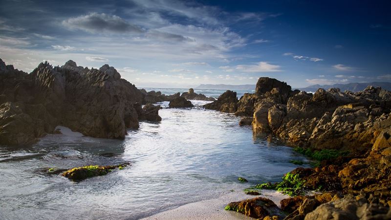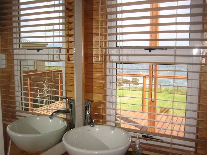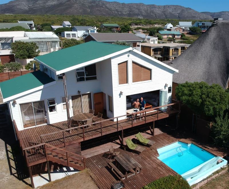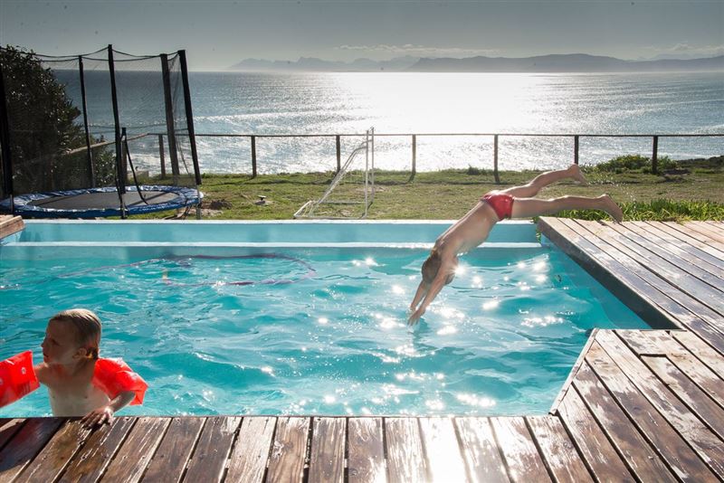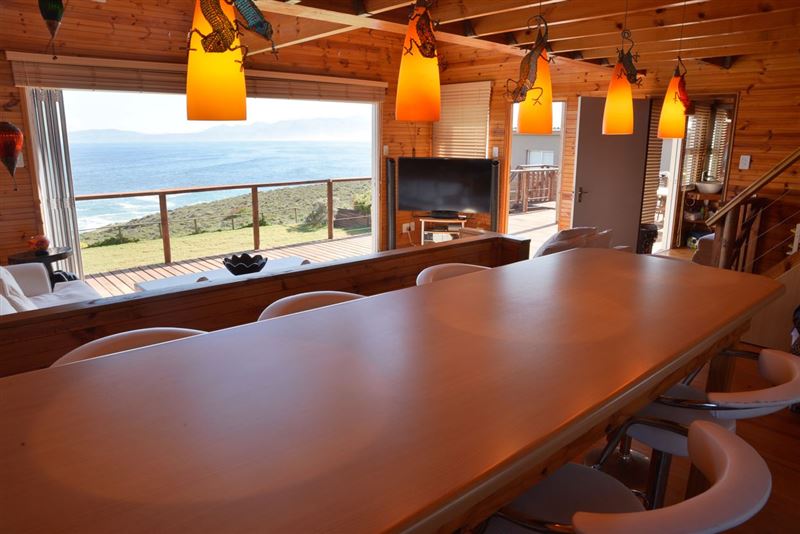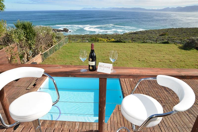 La Luna is a cosy, sea-front, white handy-plank house with natural wood interior and a splendid lawn. It is situated next to the Klipgat trail, part of the Walker Bay Nature Reserve, in De Kelders. The three bedrooms have splendid sea views, en-suite toilets, showers and wardrobes, as well as wash-hand basin. The house has a great front yard facing the ocean and a heated swimming pool. The renting price includes everyday cleaning. Breakfast is available on demand; at additional R50 per person, per day. Free uncapped Wi-Fi in the whole house, premium DStv satellite package in 55" fl
