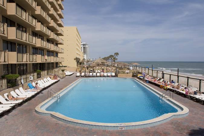 The popular La Playa Resort & Suites enjoys an oceanfront setting directly on one of the world's most famous beaches, the seemingly endless, 37 km long sandy stretch of Daytona Beach. It is located just next to Bellair Plaza, and attractions such as the Oceanside Country Club, Daytona Lagoon or the Museum of Arts and Sciences are within easy reach. Daytona Beach International Airport can be reached within a short drive. The hotel offers cosy and comfortable accommodation with stunning beach and ocean views. The guest rooms feature high-speed internet access, premium-cable TV and private balconies. Other services and amenities of the hotel include an oceanfront outdoor pool with poolside bar, a children's pool, a breakfast restaurant as well as 350 m2 of meeting facilities and an outside gazebo, ideal for weddings. The penthouse lounge houses a Comedy Club. This hotel is a great choice for families and groups of friends going to Daytona Beach.