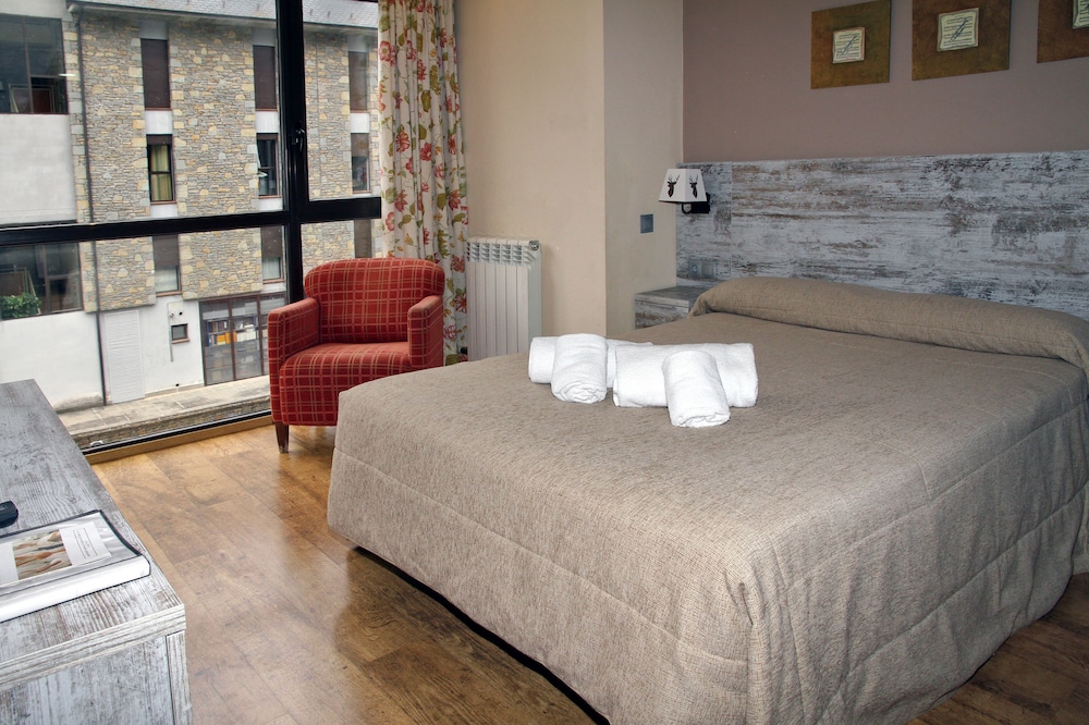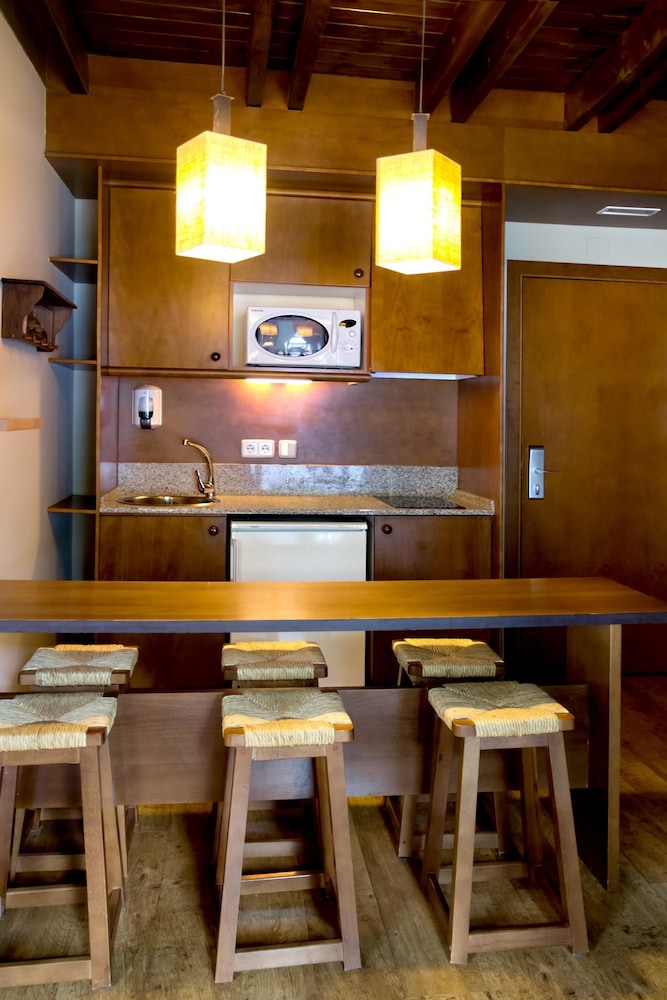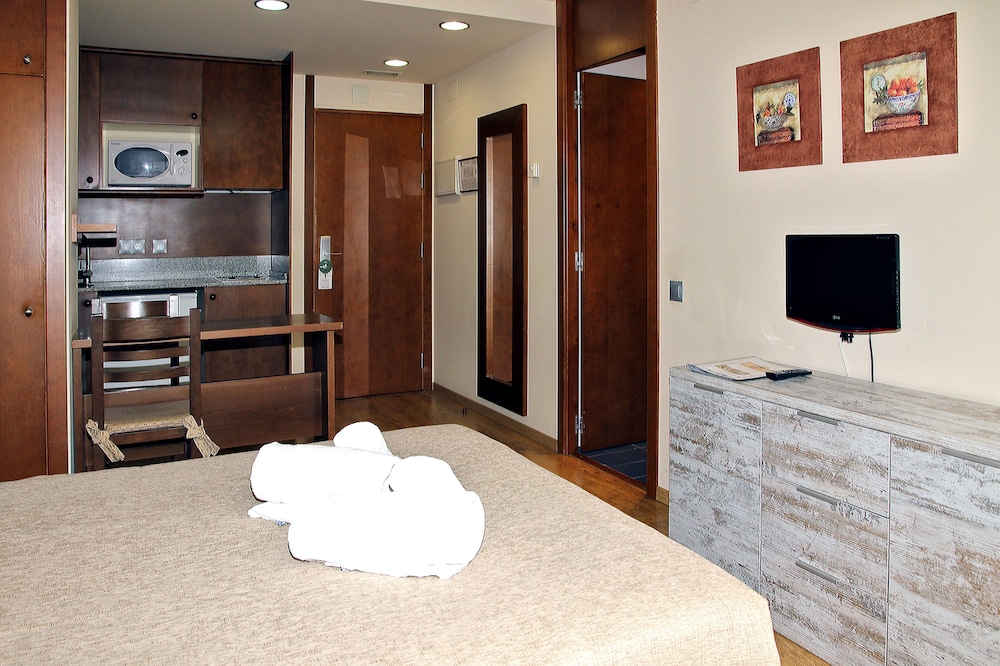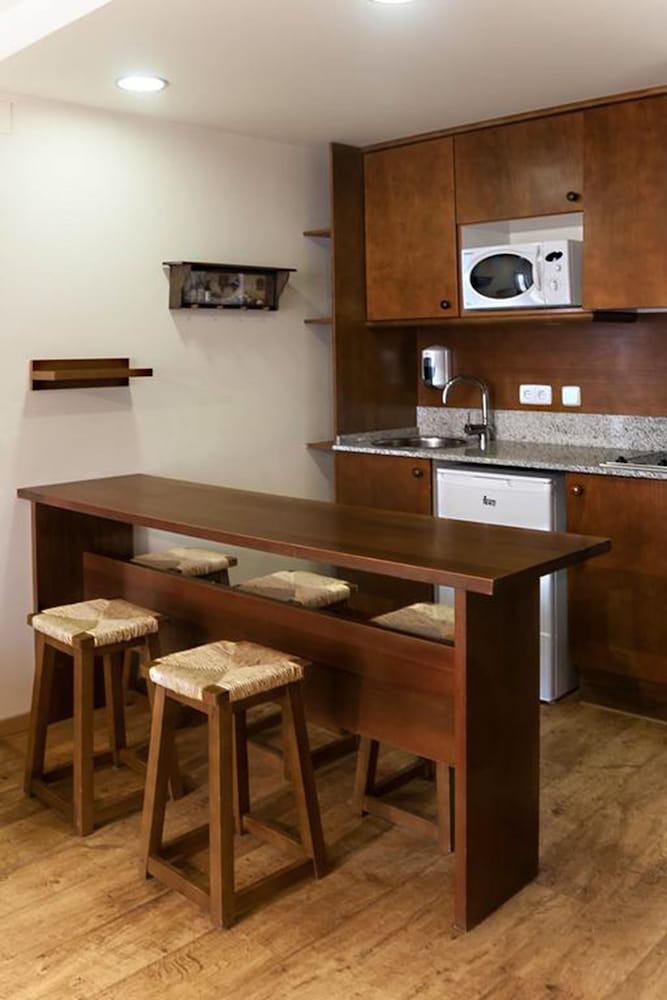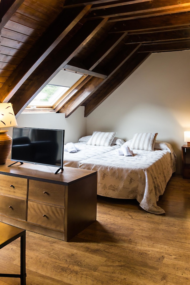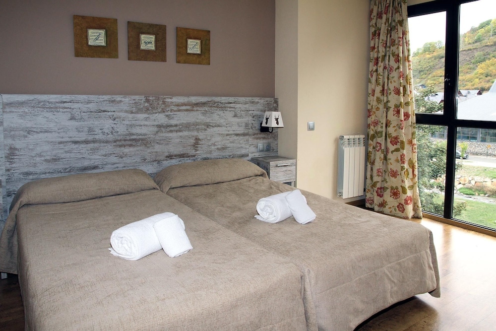 This attractive hotel is nestled in Vielha in the picturesque Aran Valley surrounded by Catalan Pyrenees. The property boasts a fabulous setting within stunning natural scenery and only 300 metres from the city centre with a host of dining options and shopping venues. Ski lovers may find the popular Baqueira ski station situated only 15 kilometres away. This wonderful establishment offers a variety of accommodation options including charming and luminous studios and one and two-bedroom apartments. Each of them welcomes guests in spacious and tastefully appointed surroundings which afford a peaceful retreat after a fun-filled day. Patrons may enjoy a flavourful dishes served at the on-site restaurant and have a drink from a snug hotel bar. The on-site leisure facilities include a sauna, fitness centre and a lavish and verdant garden. There is also a parking available for guests arriving by car.
