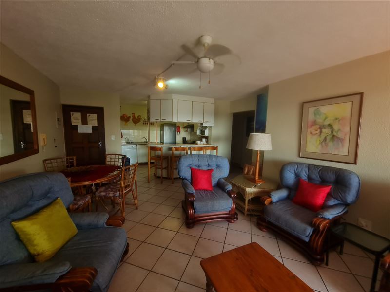 Laguna La Crete 94 is a fully furnished self-catering apartment, located in the Uvongo beachfront complex of Laguna La Crete; it can accommodate six guests.This unit comprises three bedrooms; the first and second bedrooms each feature a double bed, while there are two single beds in the third bedroom. Each of the bedrooms features a ceiling fan, and there is one bathroom available to be shared by guests. The rest of Laguna La Crete 94 features an open-plan living, dining and kitchen area; the lounge has plenty of comfortable seating, a ceiling fan, and a TV, and opens o