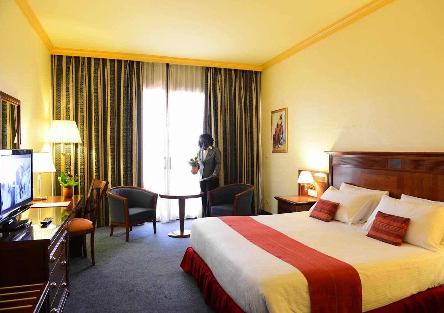 Offering an outdoor swimming pool and free WiFi Laico Ouaga 2000 is located in Ouagadougou. Guests can relax in the garden and have a drink at the onsite bar. Free parking is available at the property.All rooms at the property features air conditioning and is fitted with a flat screen TV with cable and satellite channels desk minibar and safe. Some have a dining area and sitting area and sofa.A continental breakfast is served daily at the property. Guests can also enjoy a meal at the two onsite restaurants that specialize in African International and local cuisines. There's also a coffee shop onsite.The hotel has a fitness centre tennis court and meeting facilities. Speaking English and French the staff at the 24-hour front desk are available to help guests with all their queries.Ouagadougou Airport is set about 8 km from Laico Ouaga 2000.