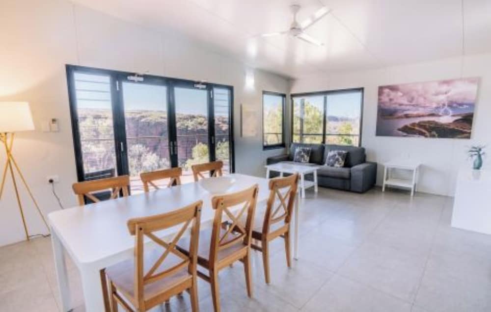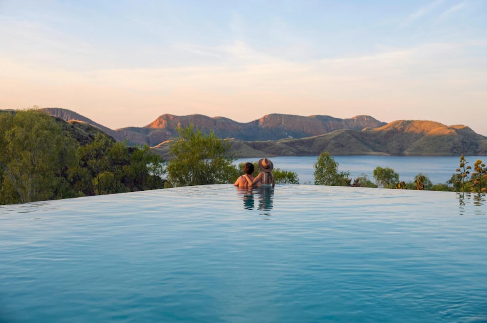 Lake Argyle Resort is set in the remote East Kimberley region, approximately 70kms from Kununurra. The resort overlooks a vast freshwater lake nestled amongst a billion year old landscape. The magnificent scenery and peaceful isolation make Lake Argyle a must see destination when visiting the Kimberley. Lake Argyle Resort boasts the most spectacular pool in the Kimberley - 35 metres of infinity wet edge and a spa, overlooking stunning Lake Argyle. There is a Restaurant, Bar and Beer Garden and general store with fuel and basic provisions. The property offers a range of accommodation options. The premium accommodation is the 1 and 2 bedroom Lake View Villas, with a private deck overlooking the Lake. These Villas have a separate living area with fully equipped kitchen, bedroom and ensuite. Standard rooms and freestanding Cabins have a private verandah and an outdoor "Bush Kitchen" with Gas BBQ is available nearby.