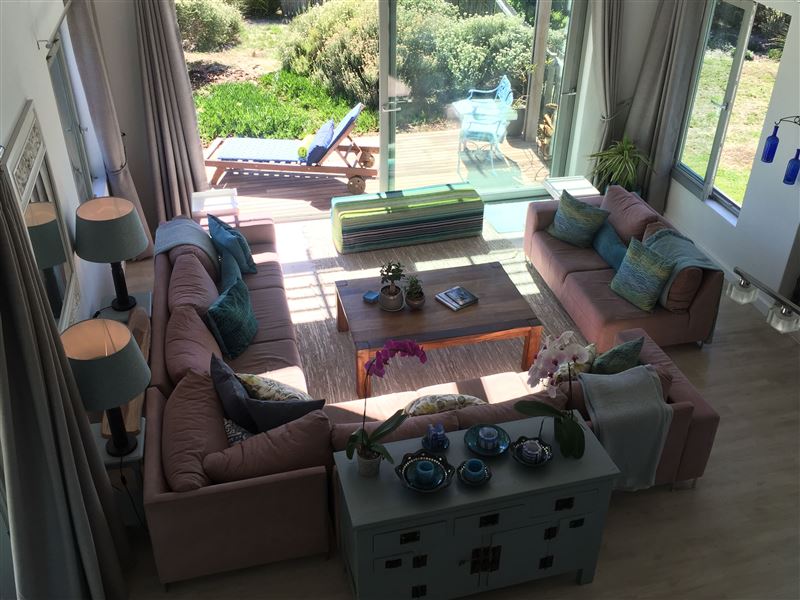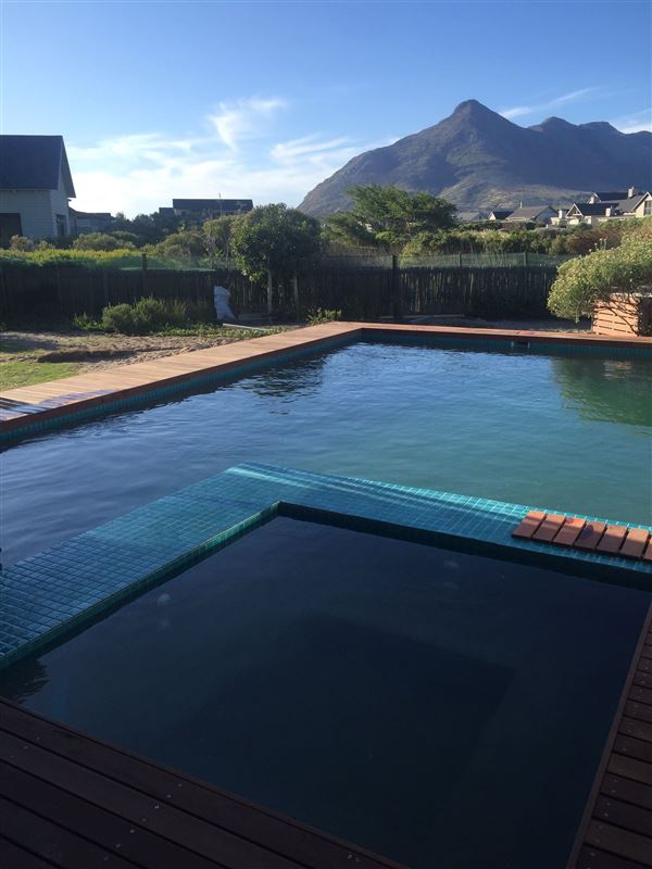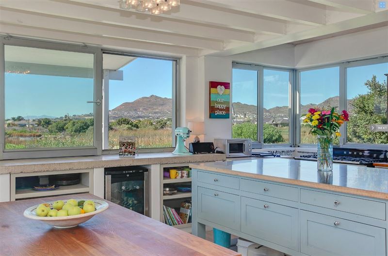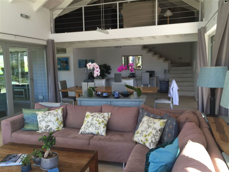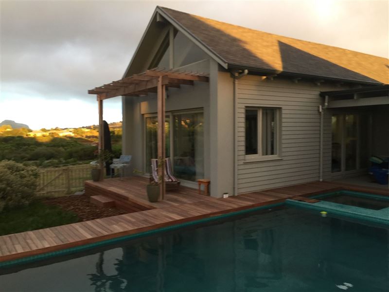This is a beautiful self-catering house with a pool situated in Lake Michelle Estate, with lovely wooden walkways and reed ponds. The shallow waters around the islands also attract wading birds and water fowls.This architect-designed home offer spacious interiors to match the panoramic views. Seamless indoor- and outdoor flow make the most of the lake- and mountain vistas.There are three en-suite bedrooms on the ground level, and a fourth bedroom above the double garage with access from the garage and the house. The fully equipped kitchen and living area leads to a wrap-around deck, facing