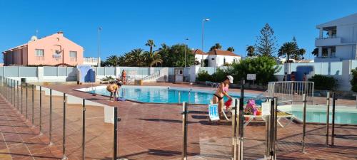 This attractive apartment complex enjoys a central location in Playa del Inglés, around 500 m from the beach. Links to the public transport network can easily be reached on foot, located around 100 m away. Various shopping venues, bars and restaurants are to be found in the commercial shopping centre, Tropical, the Plaza Maspalomas, Kasbah and Metro, around 1 km away.//The pleasant lobby includes a welcoming 24-hour reception desk, and there is a safe and a currency exchange facility also at guests' disposal. Public Internet access is available for an additional fee. In addition, it is also possible to rent bikes or a car.//The light and tastefully decorated apartments each come with a living room, 2 bedrooms, a bathroom, and a kitchenette. Further facilities include satellite/ cable TV, a radio, a fridge as well as a hire safe. All apartments also have a balcony or terrace.//In the well-tended grounds guests will find a swimming pool, separate children's pools as well as sun loungers and parasols.