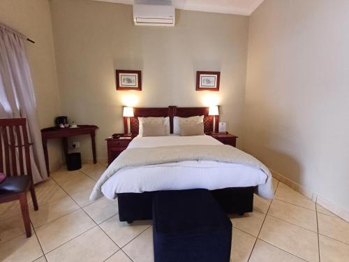 Our guests are offered luxurious rooms with modern and elegant furnishings. We have a 24 hour back up generator on standby, plenty secure parking inside the property as well as 24 hour security.All our rooms are fitted with air-conditioning, a flat screen TV, tea and coffee facilities, hairdryer, study table, bar fridge and Wi-Fi is also available. Two luxurious outdoor swimming pools are available as well as a two large dining and entertainment areas one indoor and one outdoor by the pools.The guesthouse is situated in Centurion in a quiet neighbourhood, close to Voort
